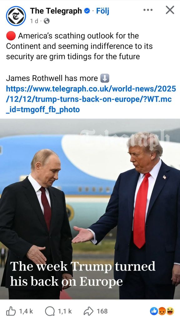 ”Reaktionerna på USA:s nya nationella säkerhetsstrategi har varit många i helgen. I strategin pekas Europa ut som odemokratiskt och en kontinent som står inför civilisatorisk utplåning om inte massinvandringen stoppas.