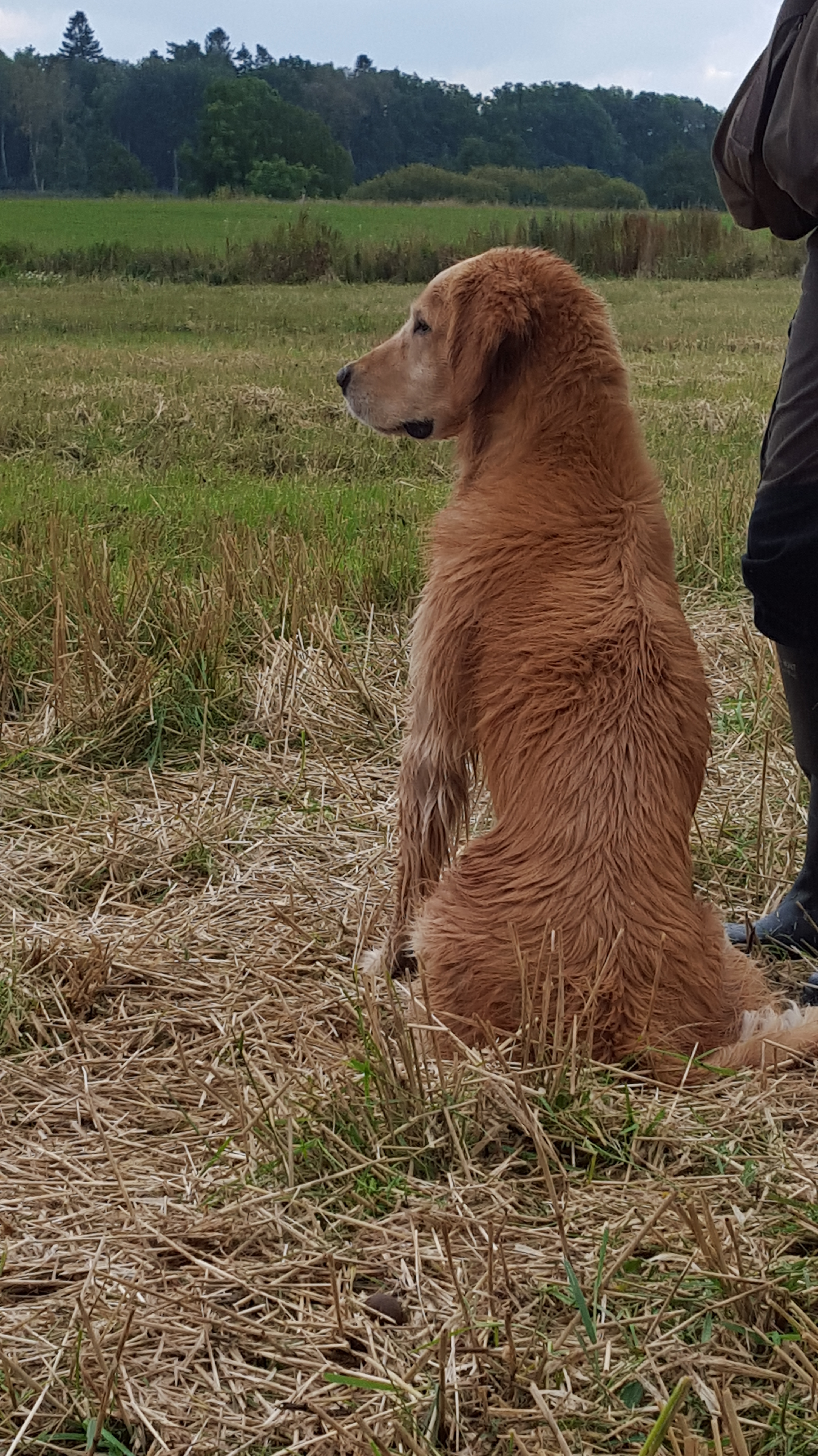 Hon tog sin långa linje galant – inklusive närsöket på halva vägen – liksom den tredje linjen med dummyn i slänten. Sedan gick vi den första linjen igen och hon fick se dummyn landa på andra sidan, hon tog den utan problemas och sedan fick hon ta den igen i slutet av hela passet, dvs efter att Ture kört alla sina linjer (också ”blind”). Så det blev väldigt lyckat!