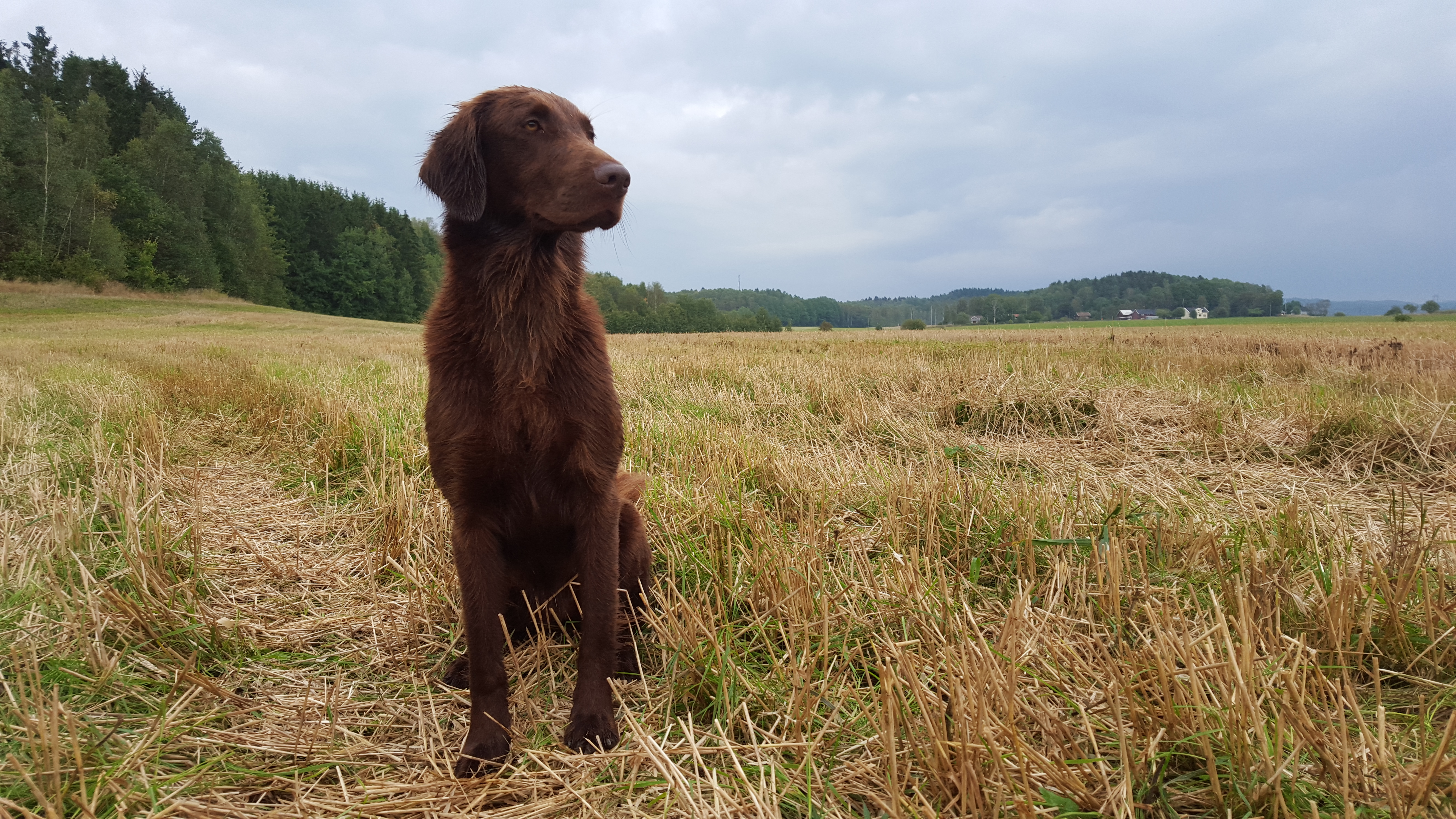 Den här veckan har vi kört linjetag på samma linjer hemma hos Eva i Tokatorp. På en stor stubbåker hade Eva förberett med vita pinnar och allt. En linje över en å med jobbig ner- och uppgång, en linje där elithundarna fick gå snett över ån medan Delfi fick sin i slänten ned mot ån och så en lååång linje över stubbåkern med ett målområde även på mitten.