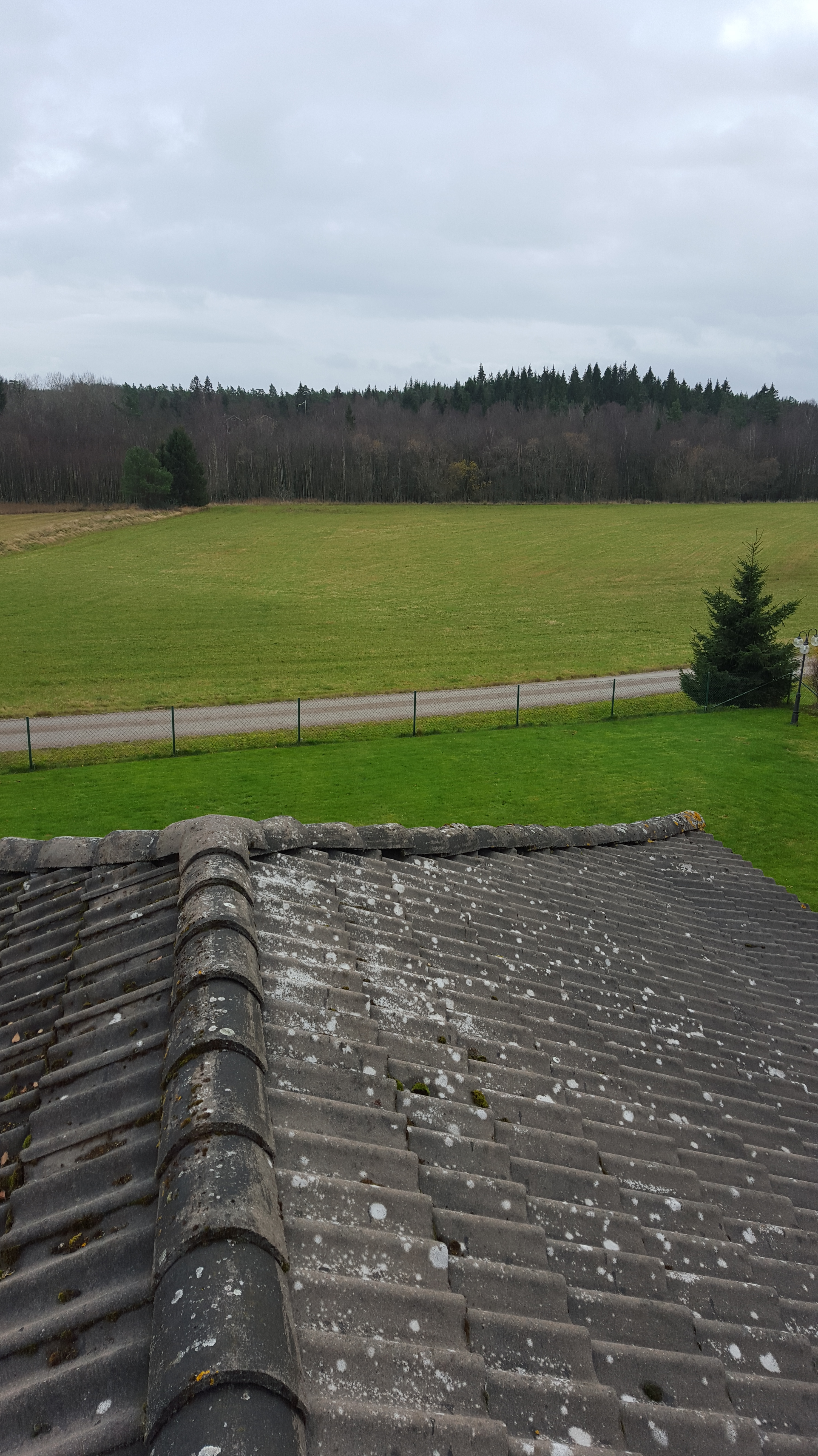 Igår var jag förresten också uppe på taket (för andra gången) och slängde ner mossa och löv samt rensade hängrännorna från löv.