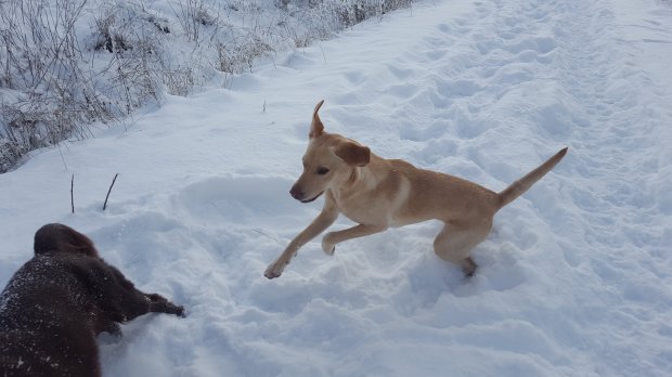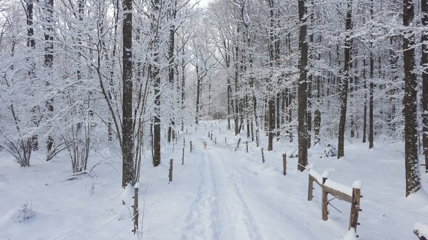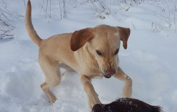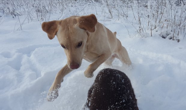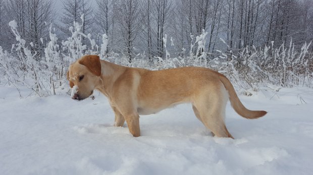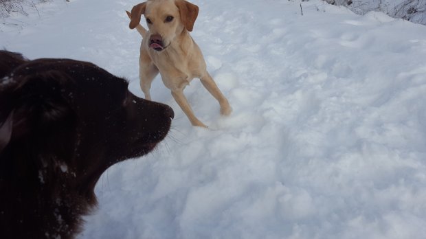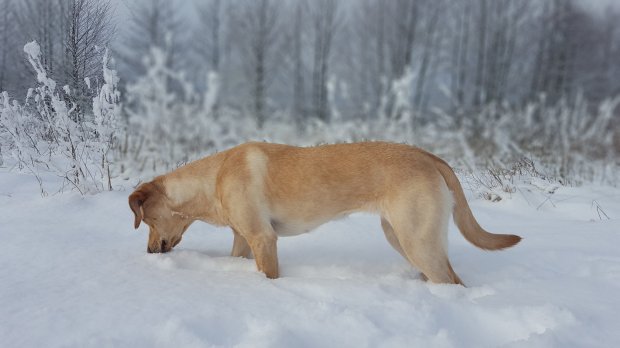 Femma lyssnar efter sorkar under snön…