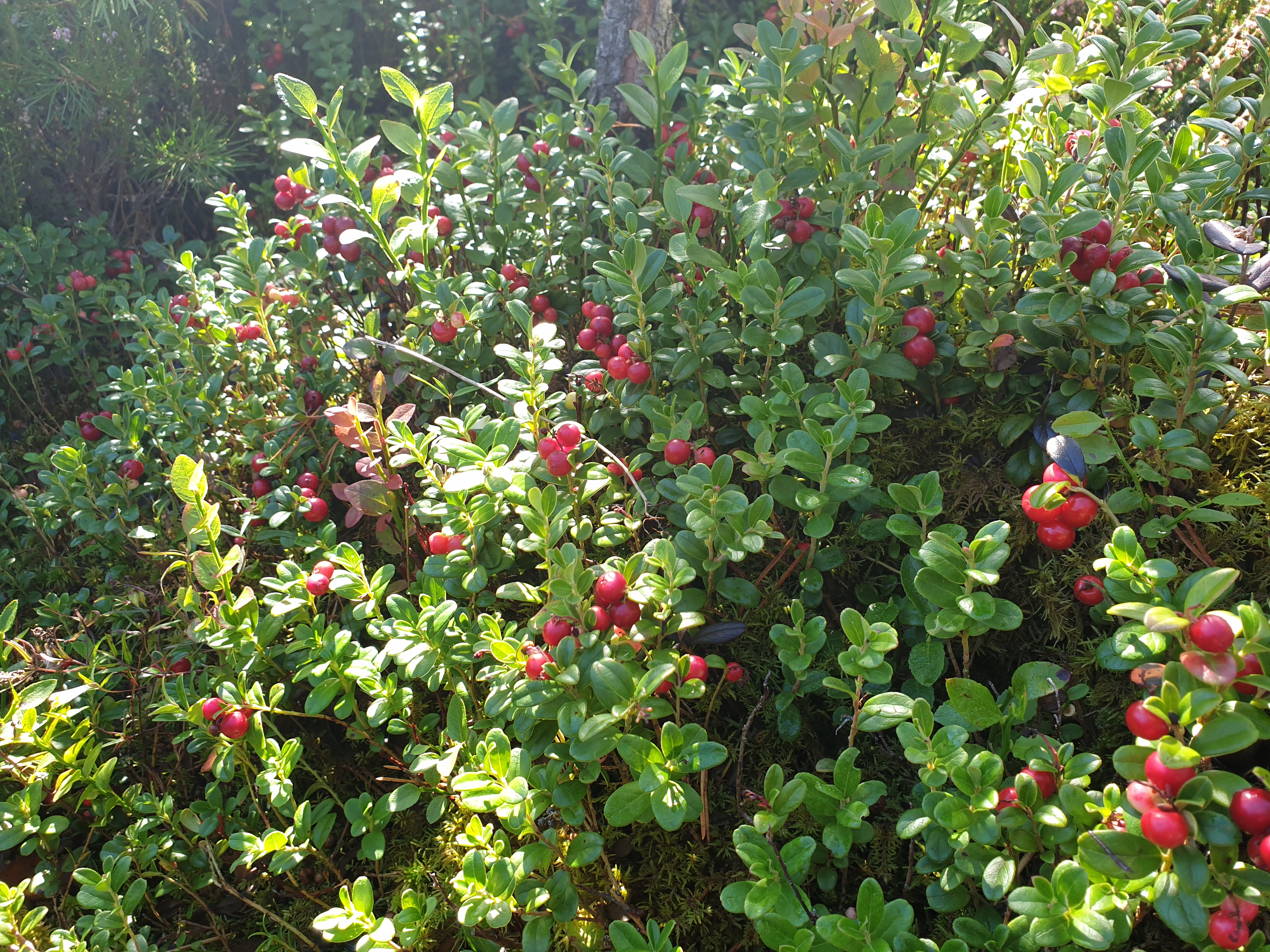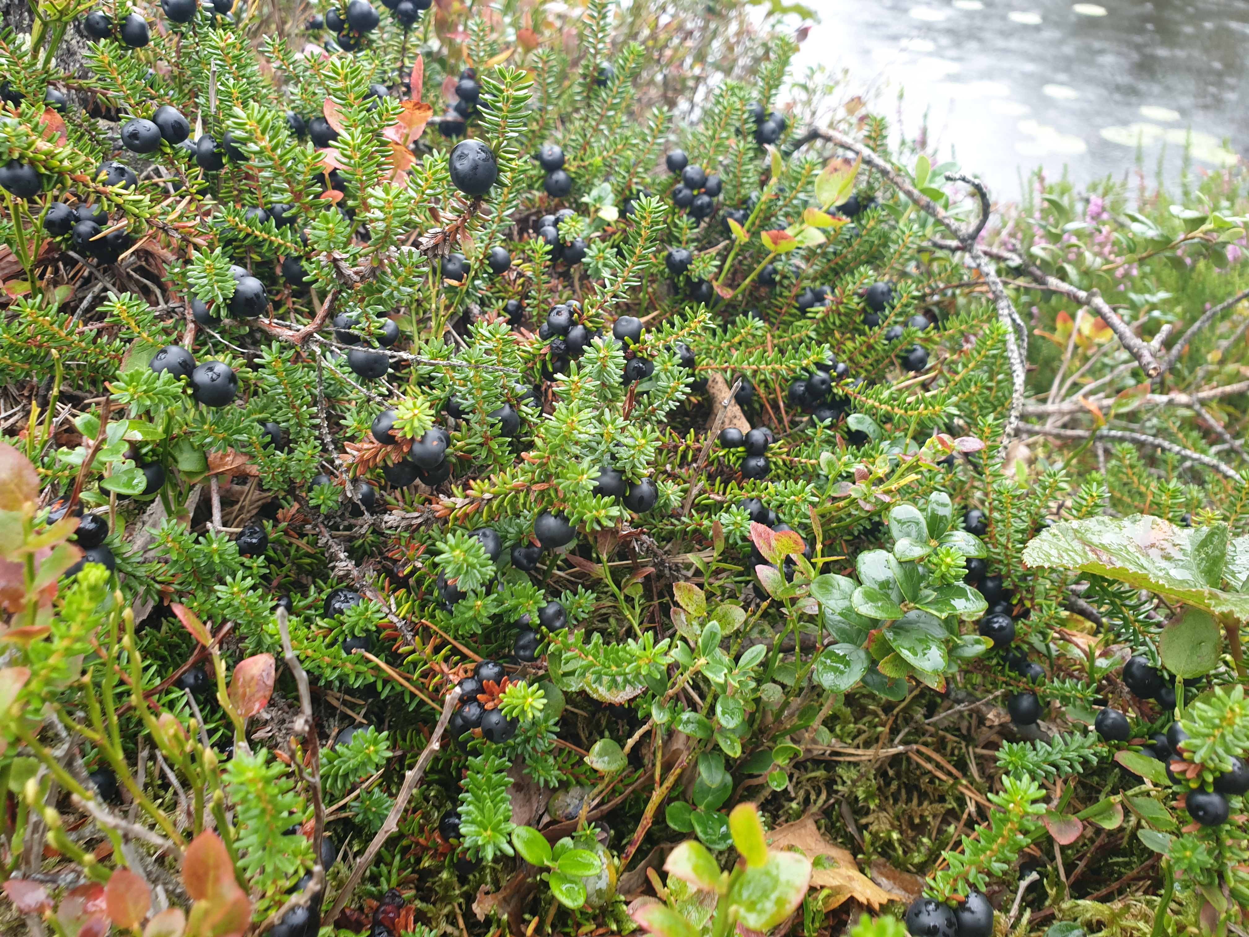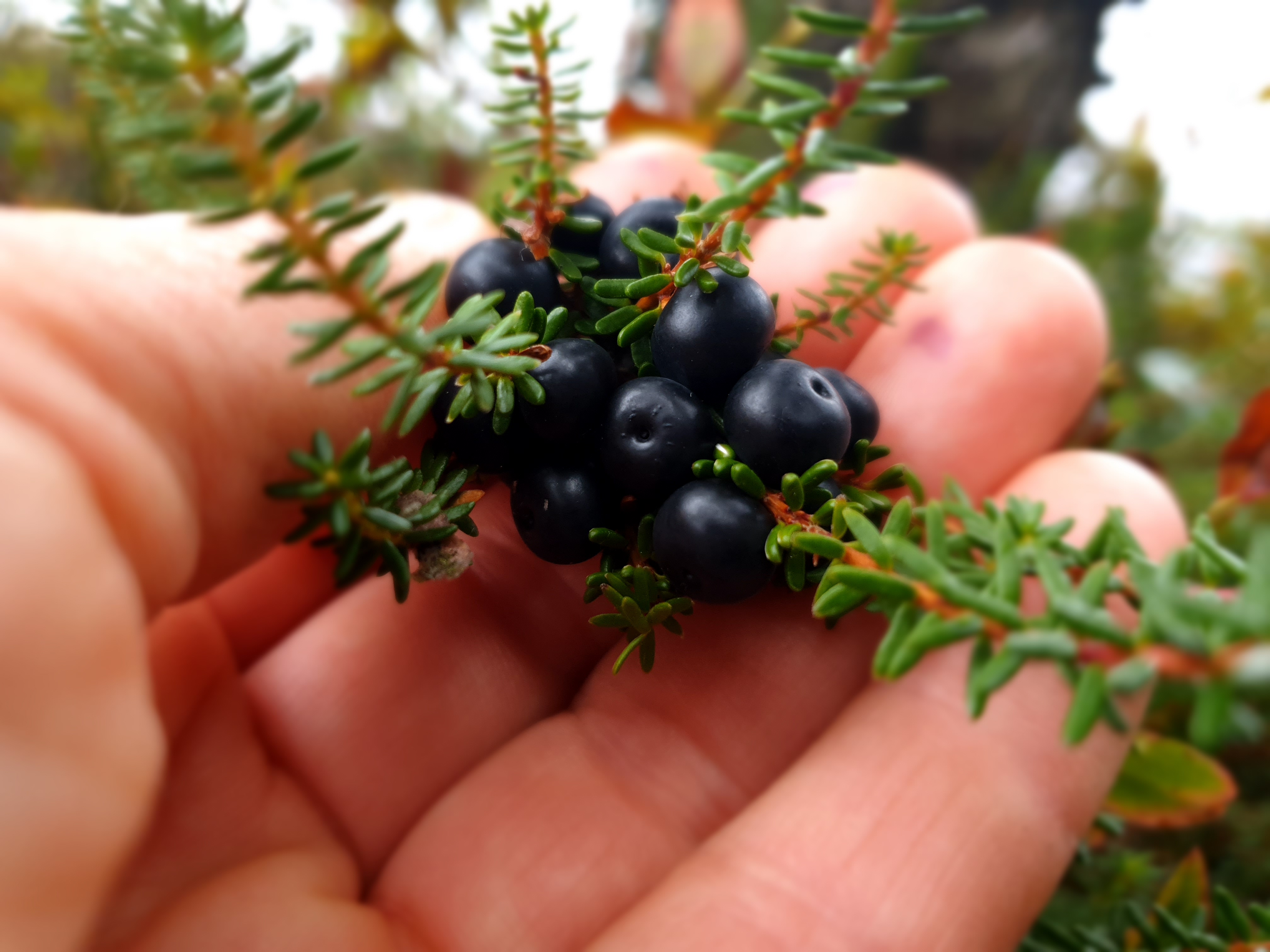 Så nu har jag stereo-plockat både lingon som blivit stora och alldeles mörkröda (inser att jag började plocka dem lite för tidigt…) och kråkbär, som är små rackare, men roliga att plocka och naggande goda.
