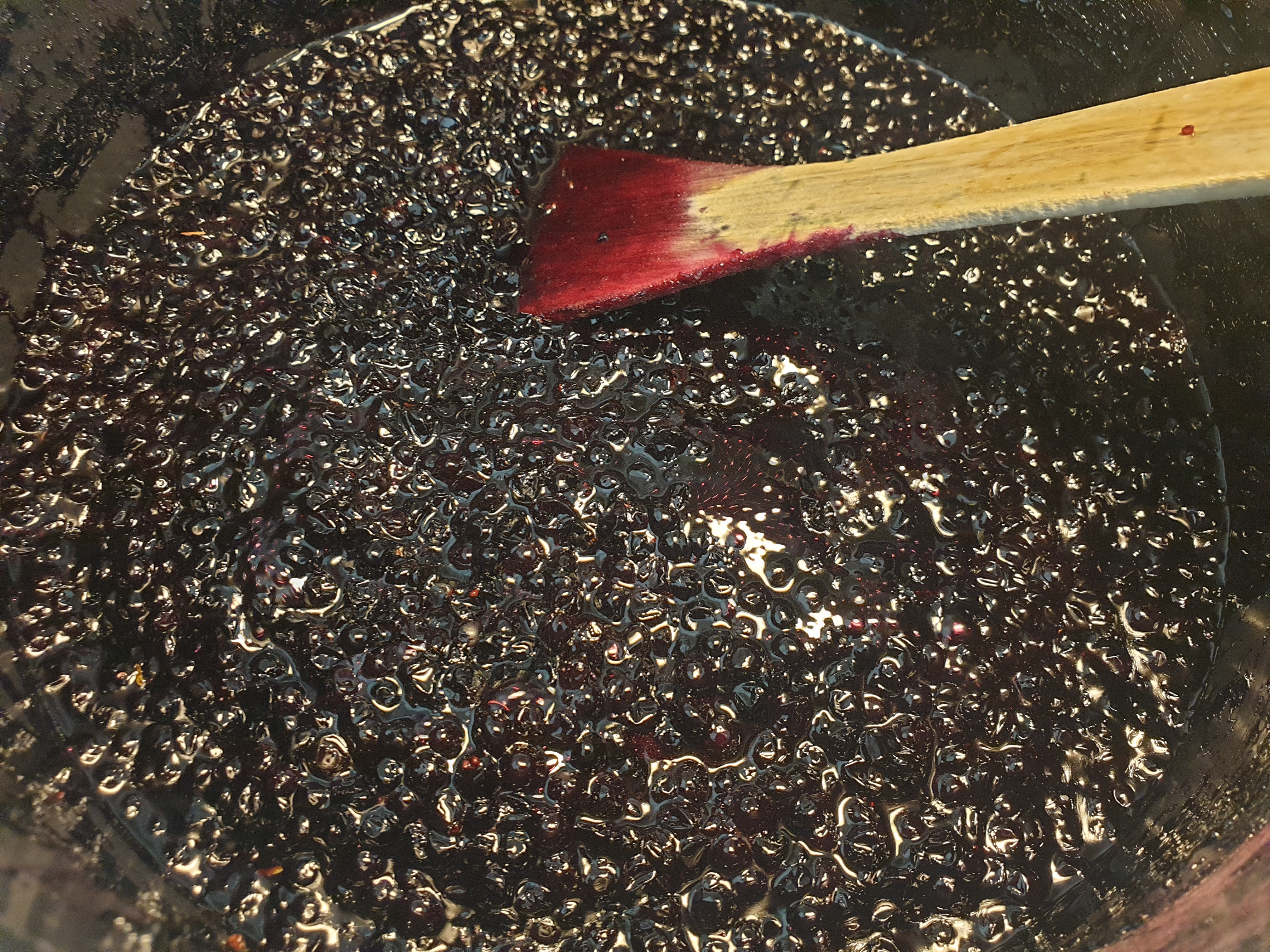 Kråkbären har dels åkt ner i en kvarts flaska vodka som väntat (i ett par år, minst) på ett gott bär att blandas med för att jag ska dricka upp den, dels har de blivit sylt, mycket god sådan! Den kommer att sitta som en smäck ihop med någon god dessertost framöver…