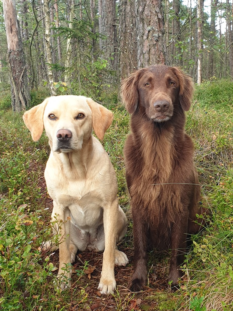 Äntligen har jag två hundar att köra på ängarna, det är något av det roligaste jag vet. Att ha lite olika områden – eller några pinnar – och låta hundarna turas om att antingen arbeta med markeringar och dirigeringar eller vänta på sin tur. Och att den turen kommer även för den väntande Delfi, det är helt underbart.
