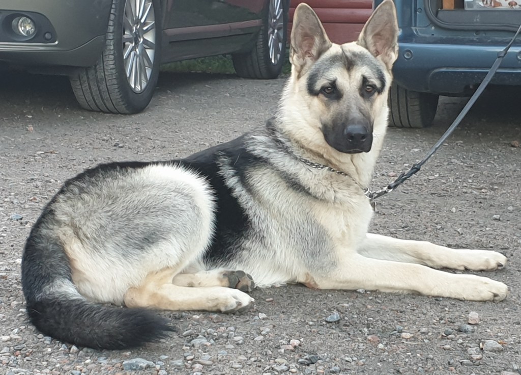 Denna kväll fick jag stifta bekantskap med den här vackra hunden, en åtta månader gammal östeuropeisk schäferhund: