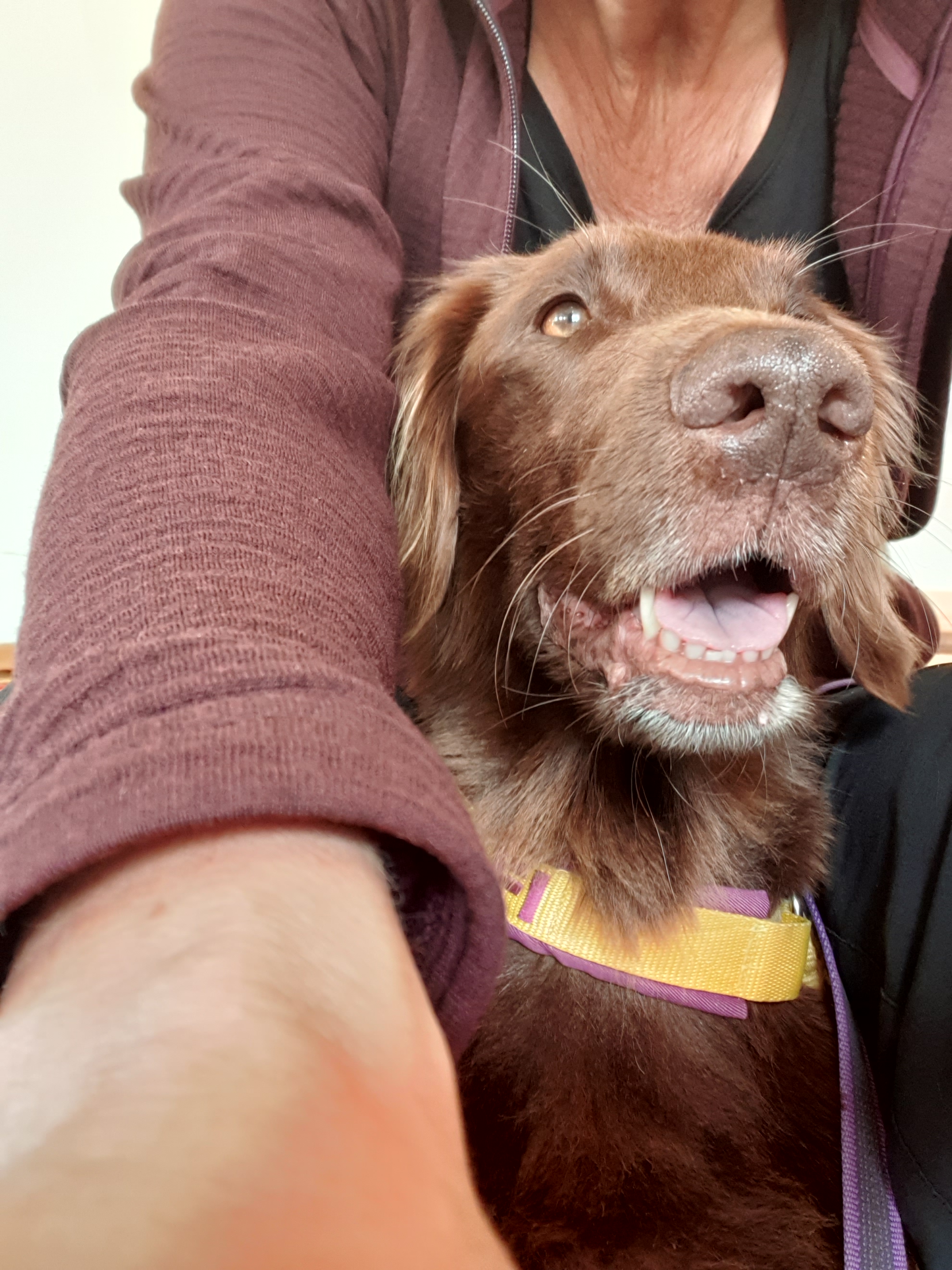 Tidigt nästa morgon åkte vi till Blå stjärnan igen, och nu skulle jag lämna Delfi för att de skulle göra en undersökning som krävde sedering. Jag avskyr verkligen att lämna mina hundar någonstans, och särskilt i de här sammanhangen, såklart. Sedan drog det ut på tiden innan de ringde mig och då berättade de att Delfi varit väldigt stressad sedan hon börjat kvicka till, så jag kastade mig såklart iväg för att hämta henne.