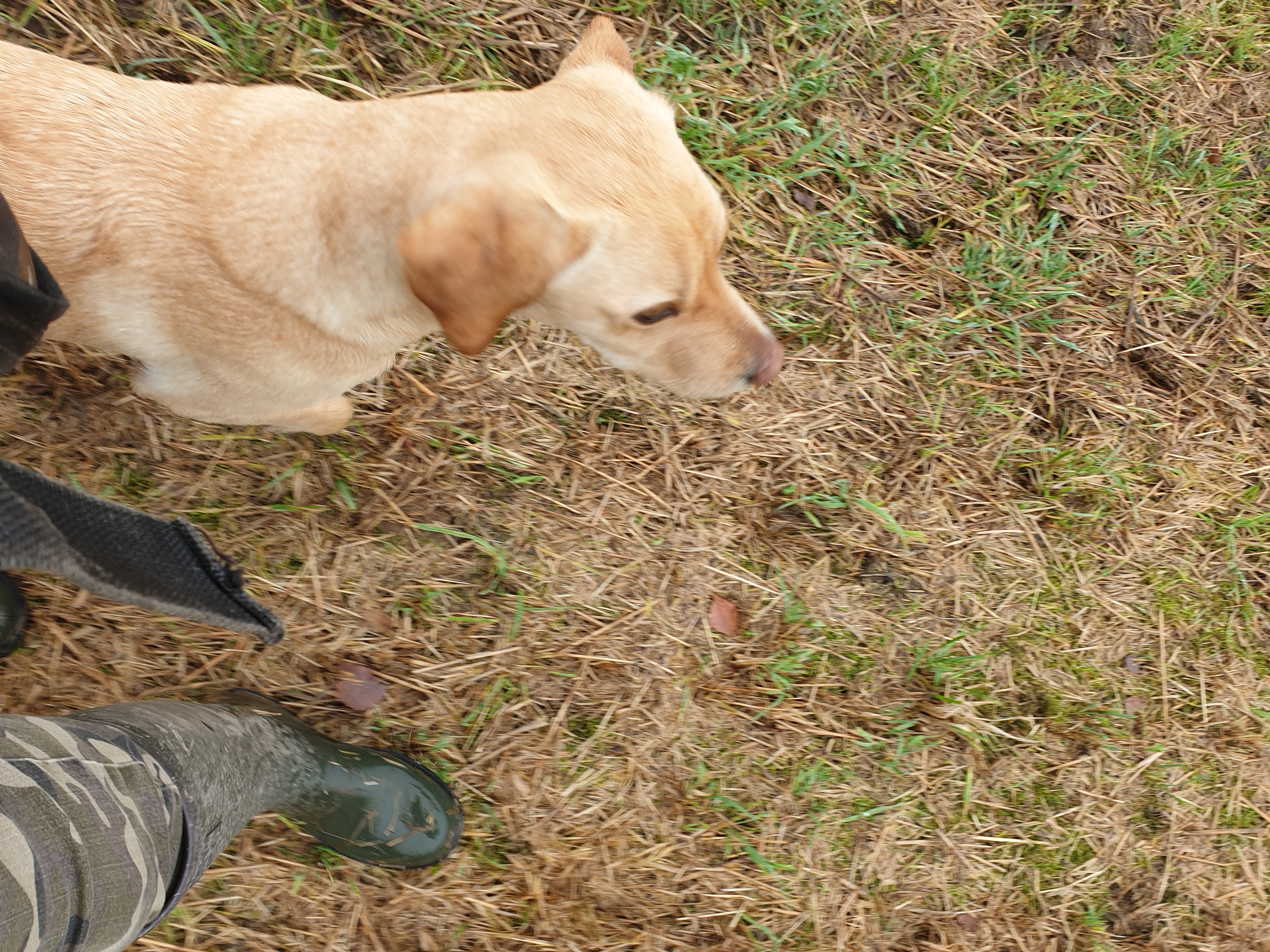 Igår hade vi privatträning hos Kopparhult, och det visade sig snart att Femma fortfarande tycker det är väldigt onödigt att springa över leriga fält för att hämta apporter; det trippas på tå för att åstadkomma så lite skvätt under magen som möjligt… Jag får fundera lite till över detta – för jag vet att hon inte är lika noga med det där i aktiviteter där hon verkligen är motiverad. Busmarkeringar med boll, exempelvis. Och häromdagen busade hon med en ny goldenkamrat på en lerig gräsmatta, och efter det var hon inte vacker syn… men roligt hade hon haft! Jag har också sett henne spåra genom blötmark – även vintertid – och det bekommer henne inte det minsta. Så att…