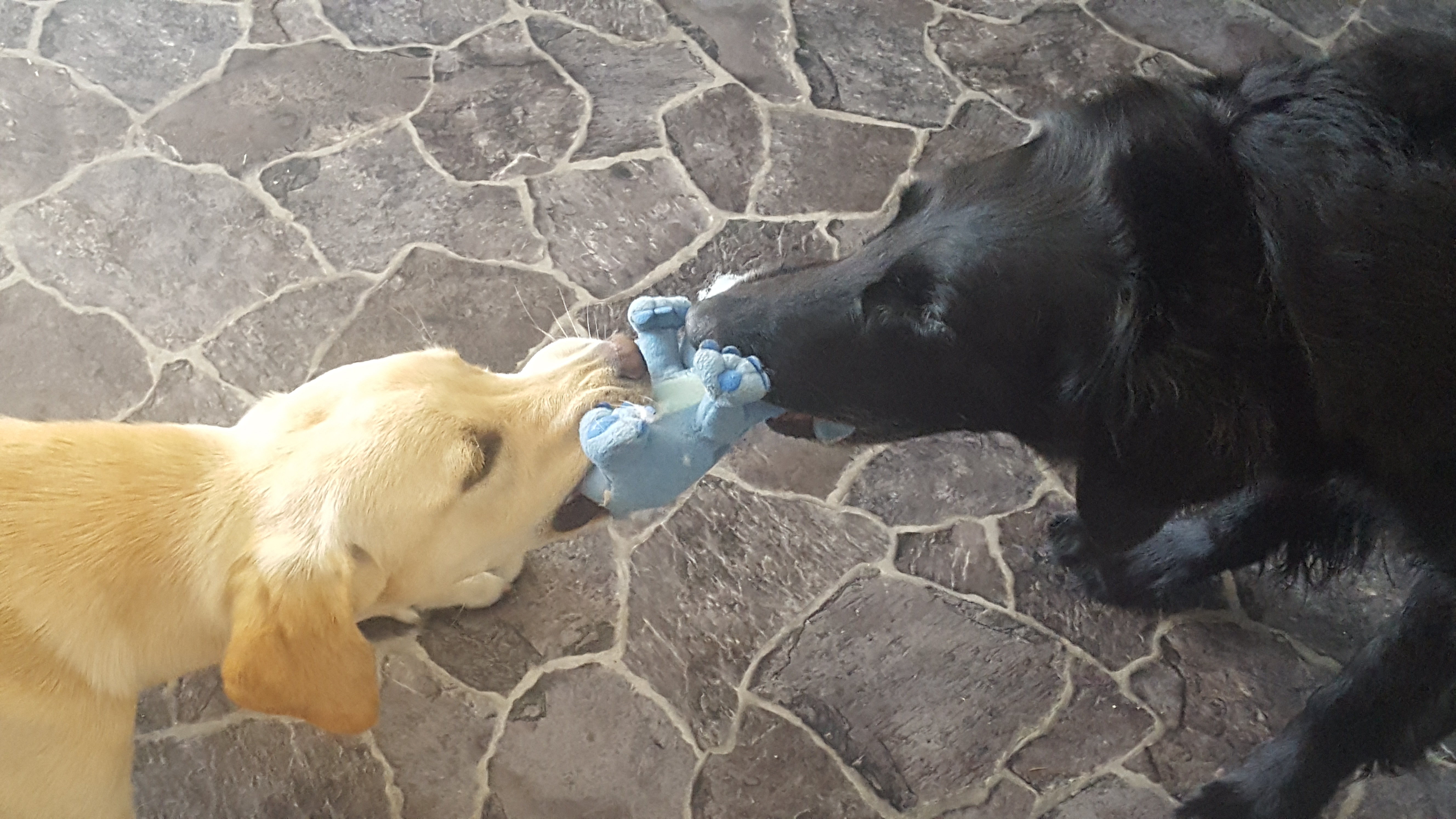 Femma älskar också att kampa – jag införde kampen tidigt i hennes grundträning, men den som verkligen fick henne att älska den leken var Piaf… jisses vad de drog runt med varandra över golven här hemma.