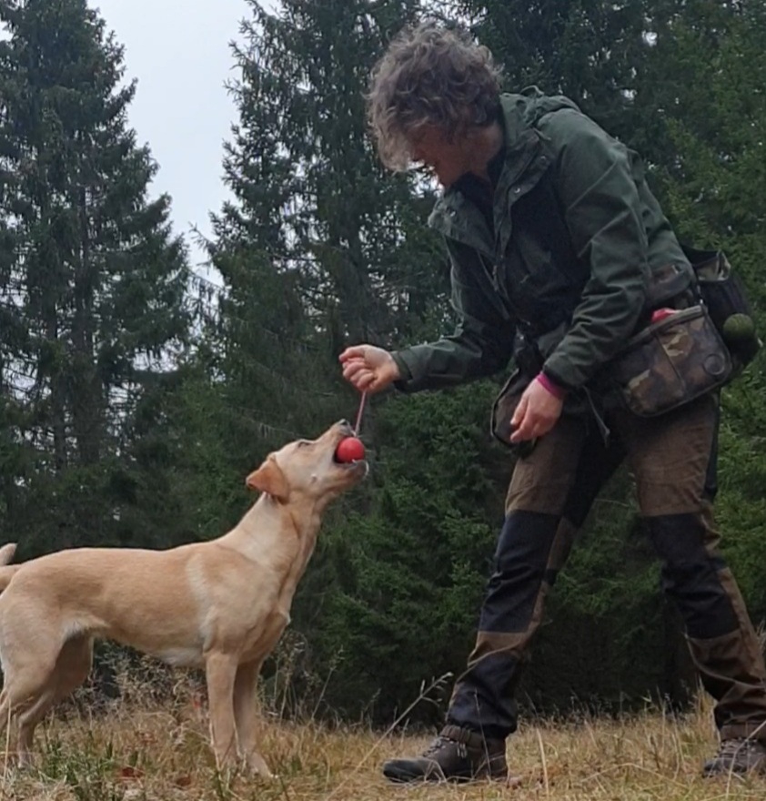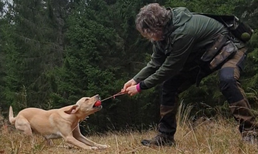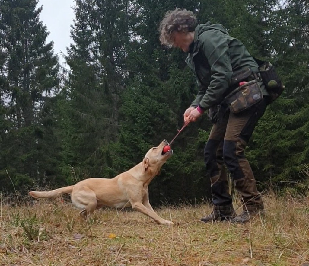 På en kurs för ett par år sedan träffade jag en flatteägare som berättade att hennes hund hade utmanat henne genom att aldrig vilja gå på öppet liggande, eller självklara apporter – hunden krävde att få ”jaga”, dvs leta, för att det skulle vara mödan värt. Nu minns jag inte om det bara gällde linjetag eller om det även var på markeringarna. Men jag återkallar detta minne nu, när jag fnular över Femmas drivkrafter. Faktum är ju att hon älskar att spåra och söka, hon älskar att använda nosen – och hon gör det bra. Hon taggar igång på utmaningar där hon får jaga, och tenderar att tappa lusten vid upplagda övningar med självklara apporter, exv. där hon eller flera olika hundar skickas om och om igen till samma område.