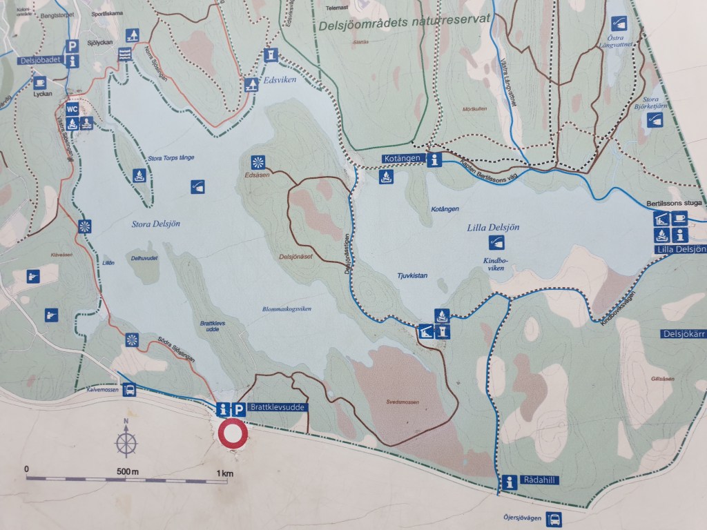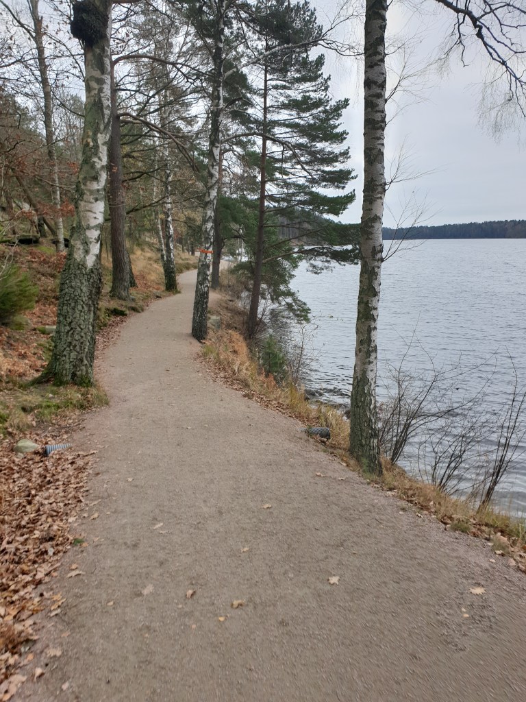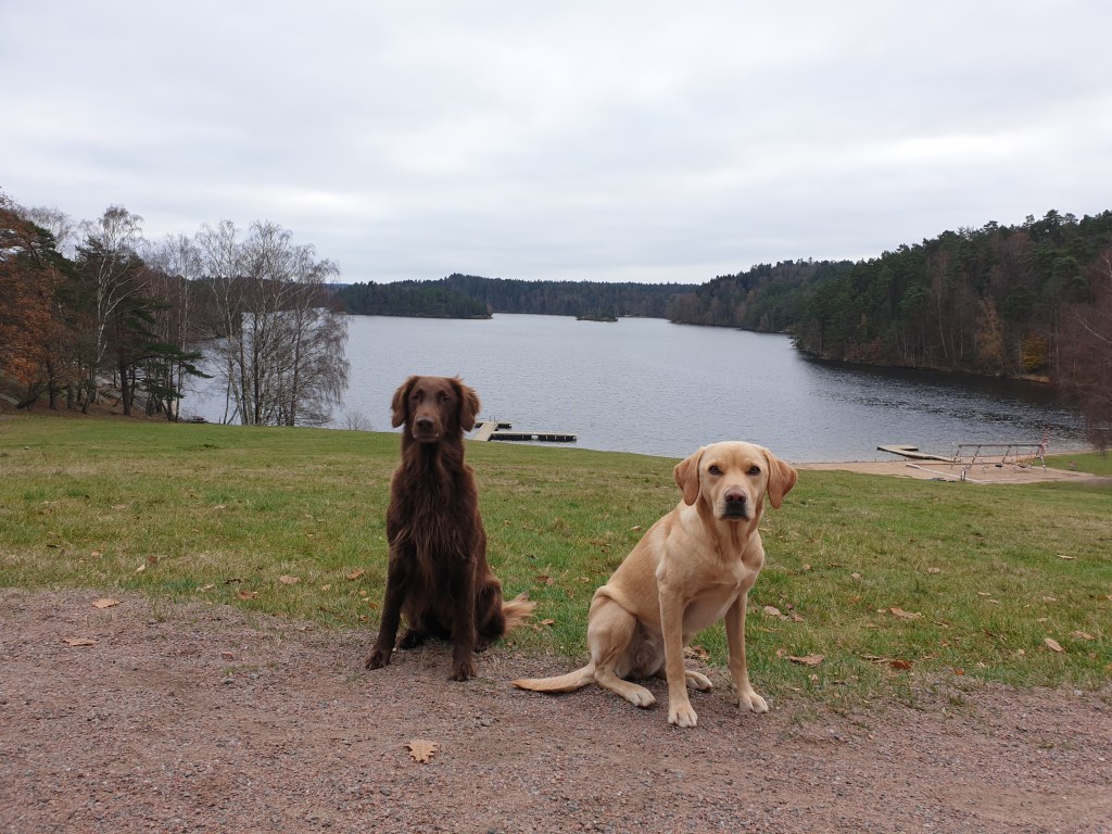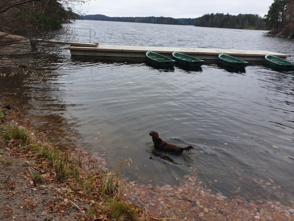 Eftersom vi ändå var ”i stan” åkte vi till Delsjölmrådet och gick en ordentlig runda. Jag har aldrig gått runt Delsjöarna förut, så vi tog båda två på en gång… En go runda med många goa platser… Och mina lantishundar fick gå långa sträckor vid sidan när vi fick möten med motionärer och hundar.