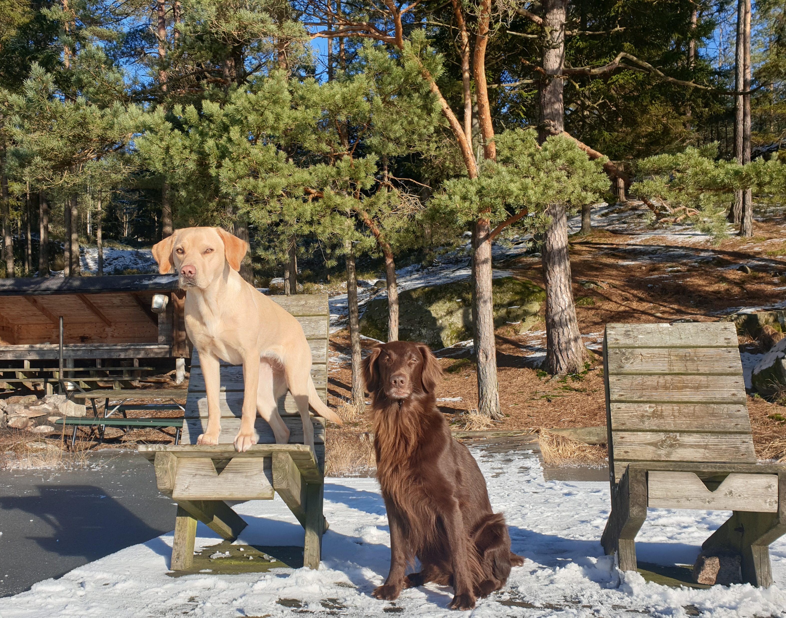 Nu avslutar också båda hundarna sina löp, och jag har redan städat och tvättat golven, bytt filtarna i soffan och lagt ut fårskinnen igen. Återstår bara att lägga ut favoritmattorna igen.