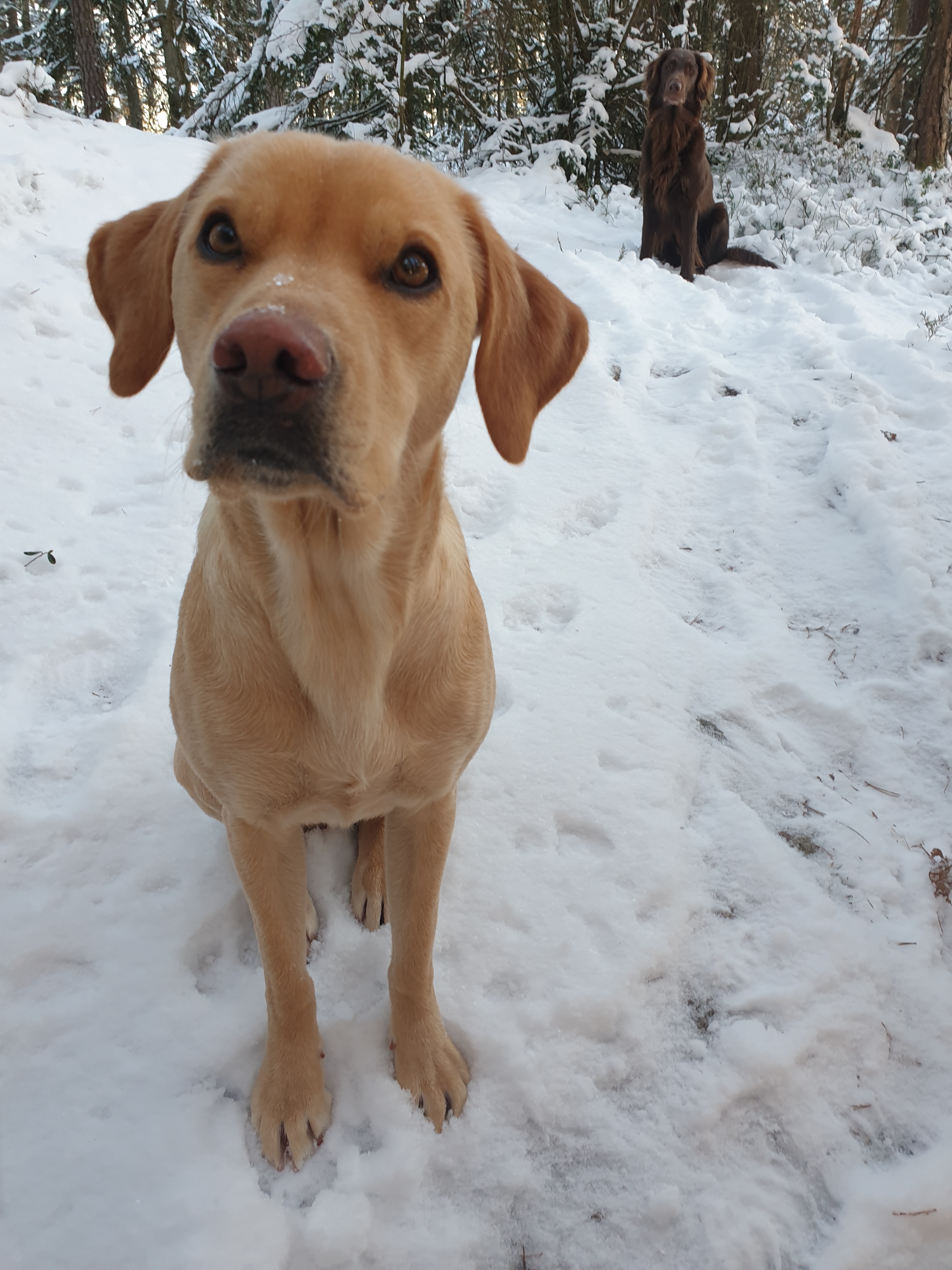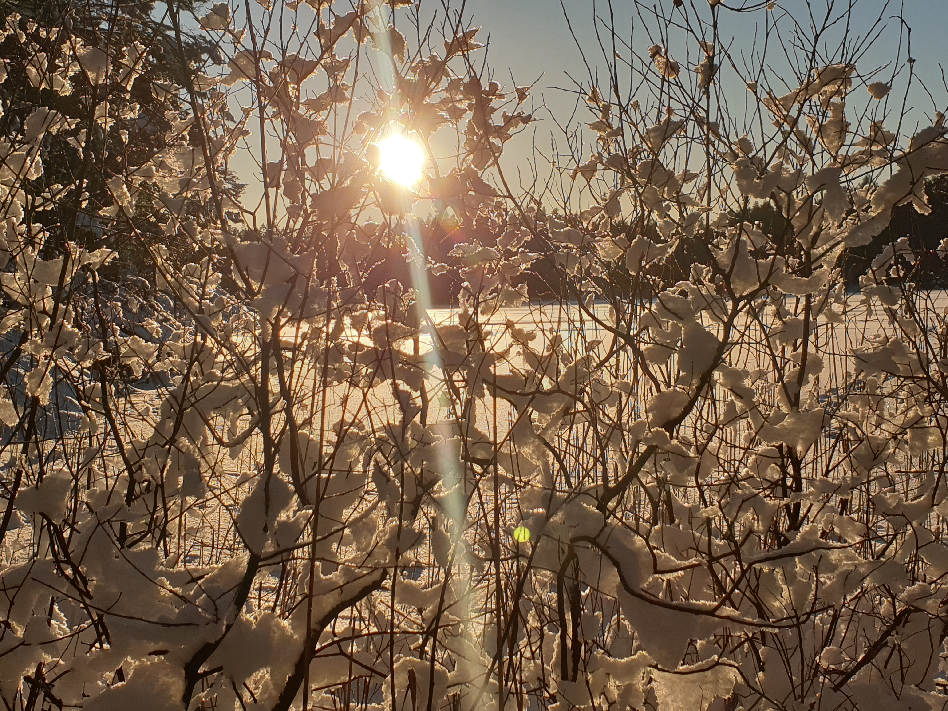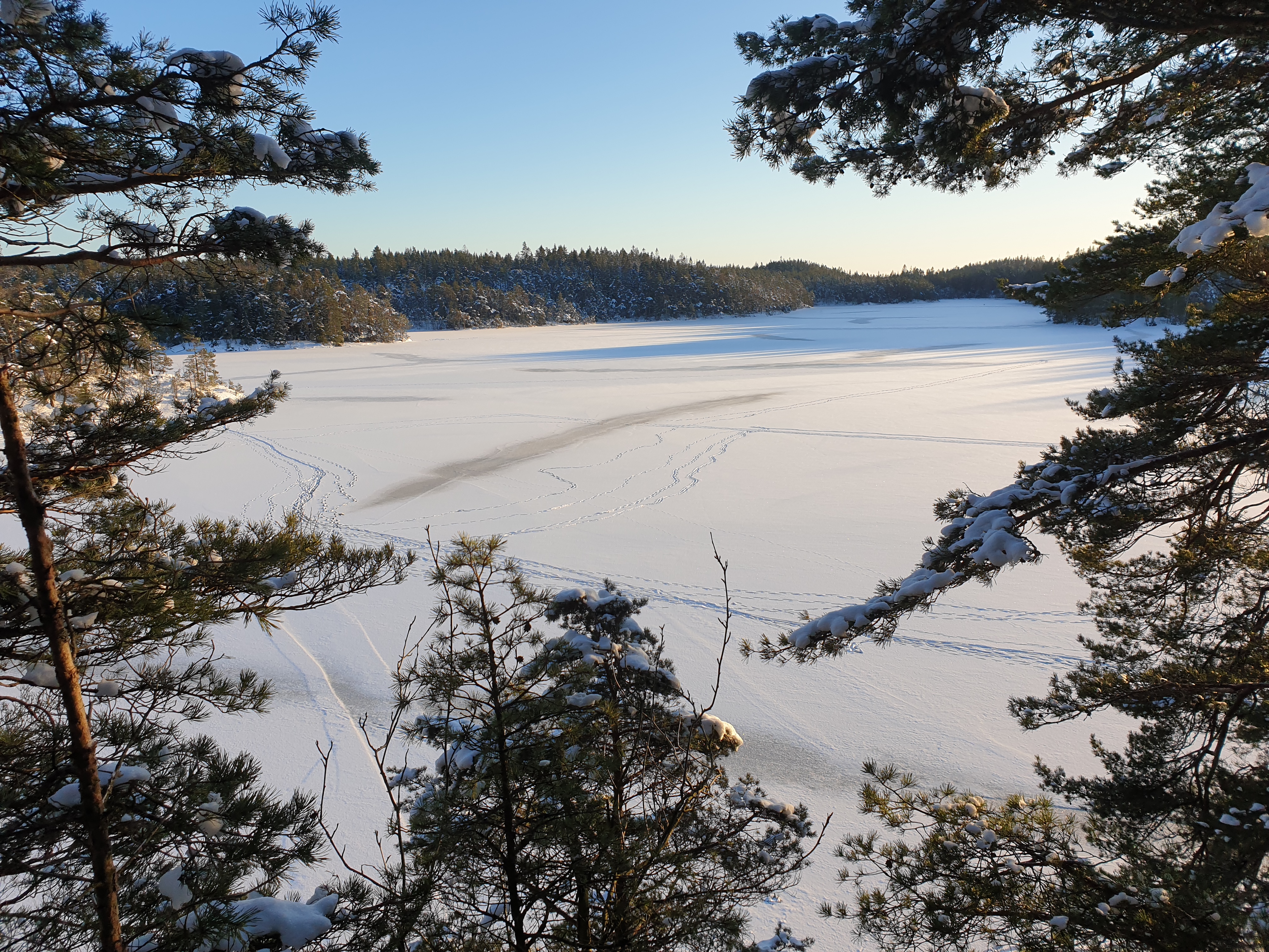 Under gårdagens första promenad fick både Delfi och Femma ha sina Back-on-Track-täcken på sig, och de klarade sig utan några besvär, trots kylan. Till eftermiddagsrundan hade det blivit lite mindre kallt och täcken behövdes inte. Men vi tog en träningsfri dag – jag ville hellre bara njuta av allt det vackra. Skogen och träden med sina snötyngda grenar, sjön och isen med sina spår av djur och människor, solen och snön som gnistrade i densamma.