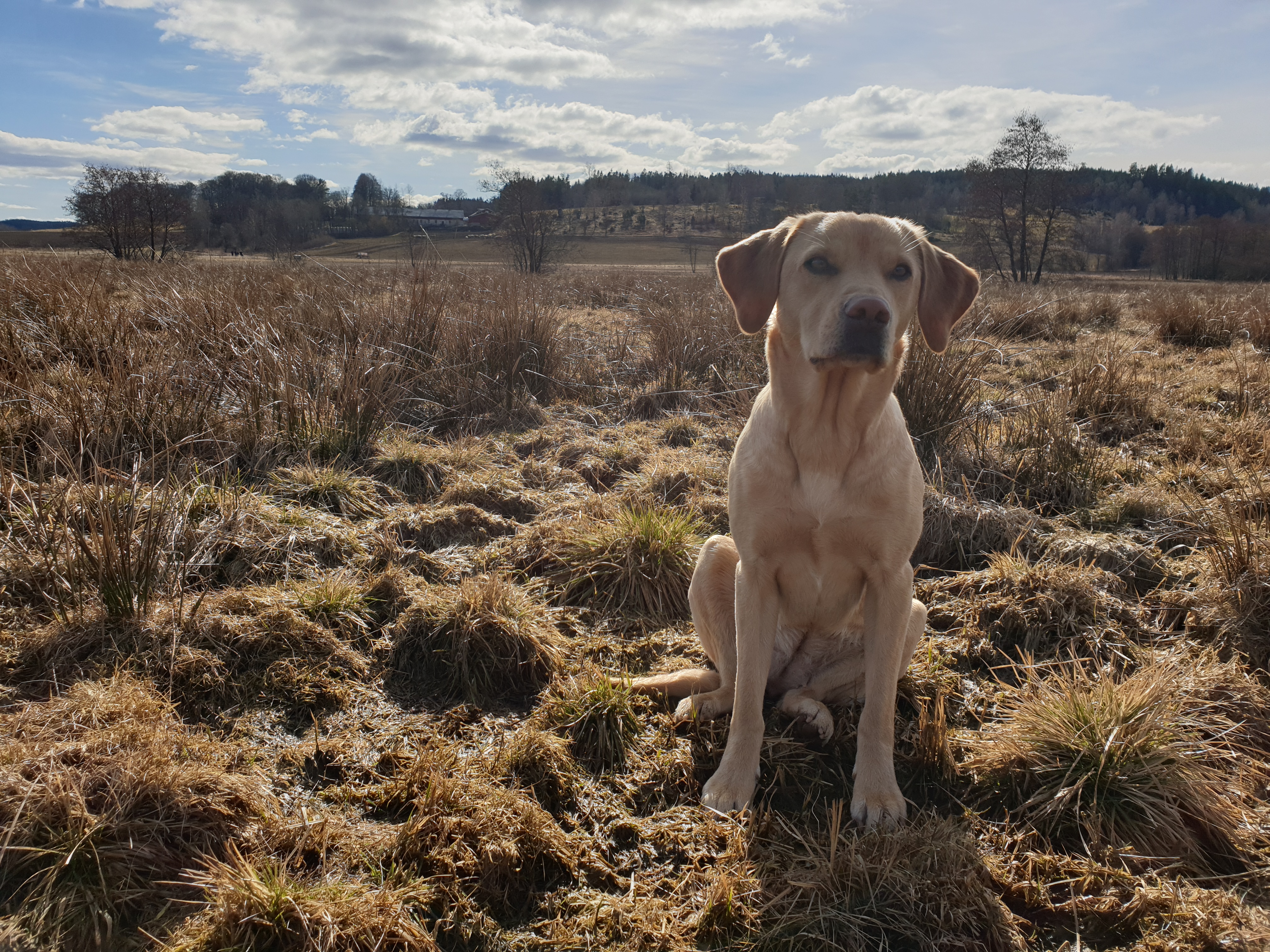 Idag fick jag träna båda hundarna tillsammans igen, som jag har längtat. Vi gick först en ordentlig uppvärmningspromenad, sedan tog jag cykeln själv och åkte till flera olika fält och lade ut fem olika punkter/linjer, två dummies på varje. Cyklade hem, plockade ut hundarna, och så gick vi sansat fot från fält till fält, från linje till linje och plockade in dummy efter dummy, ibland med störningar, ibland utan. Det blev riktigt bra, och tydligen lagom svårt. Femma är just nu något säkrare på linjetagen än Delfi, men så har det också alltid varit det som Delfi och jag haft allra svårast att få till. Jag har verkligen inte hittat ”receptet”, konceptet, strukturen som kunnat ge oss säkerhet i skicken tidigare. Men kanske, kanske är vi på g nu.