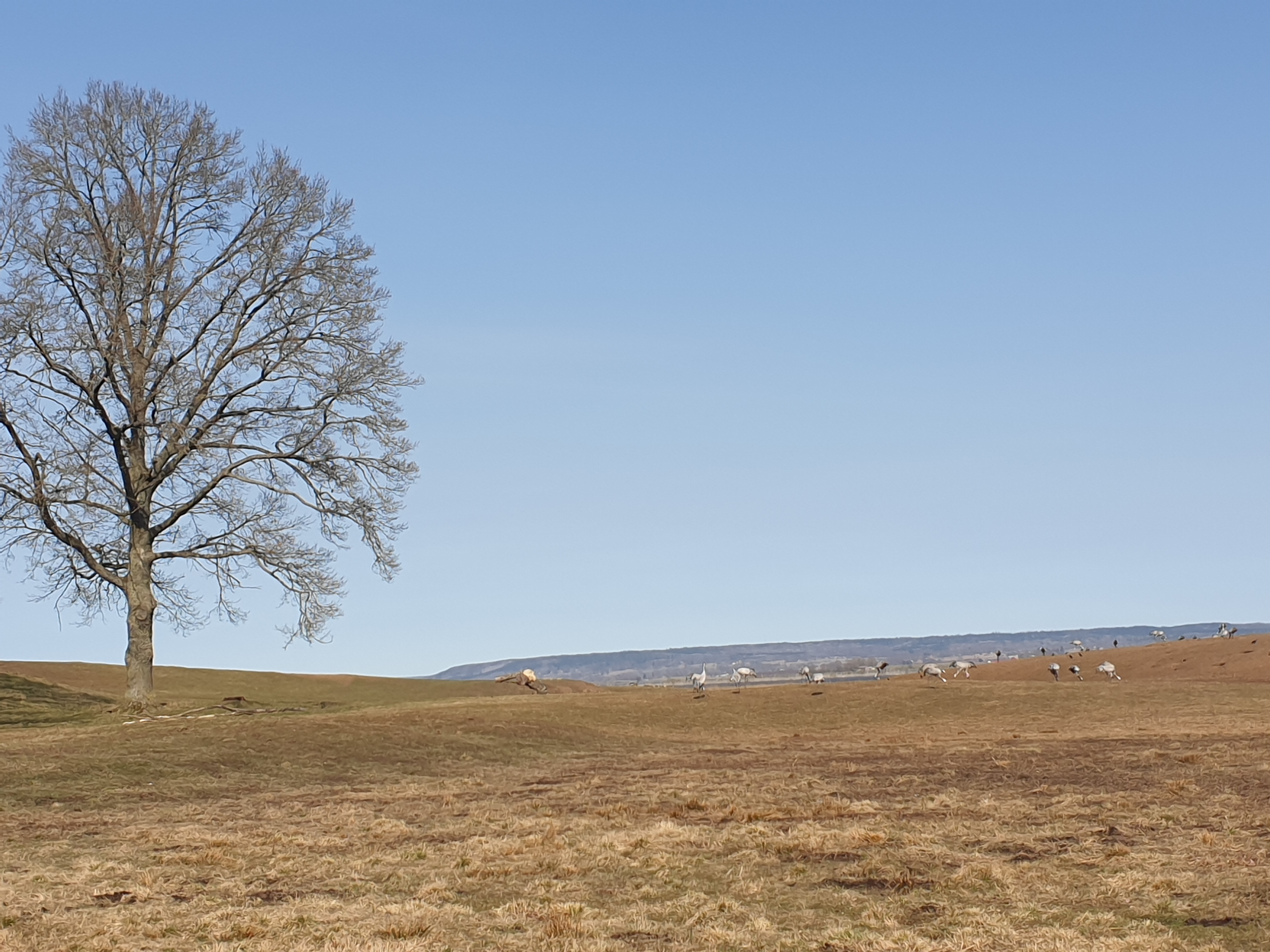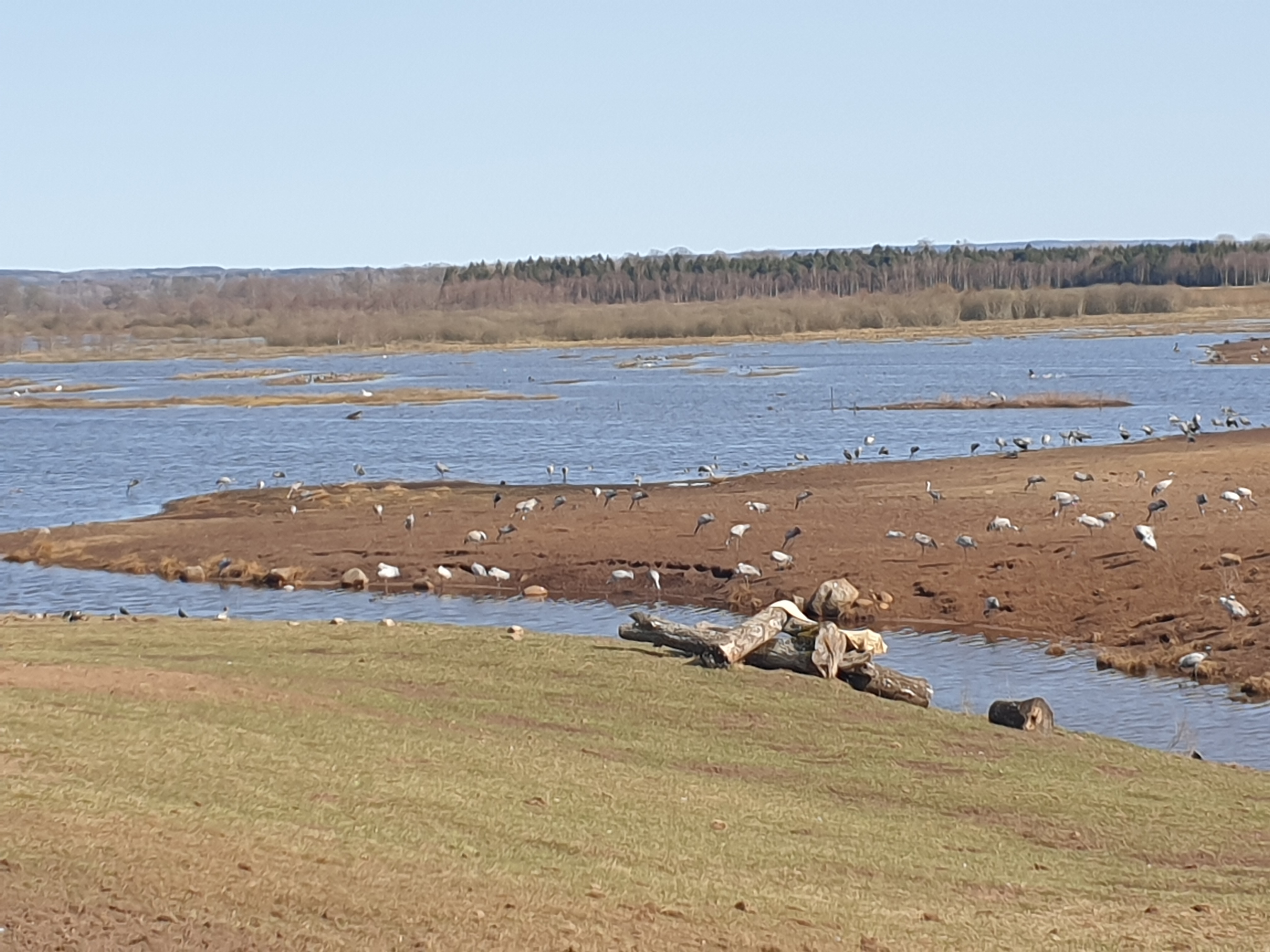 Men först var jag ju tvungen att åka inom Hornborgasjön, när vi nu ändå var så nära. Förra gången jag var där var det helt fel tid, men nu fick jag äntligen se riktigt många tranor på en gång. Däremot ser jag ju tranor på bra mycket närmare håll på fälten här hemma…
