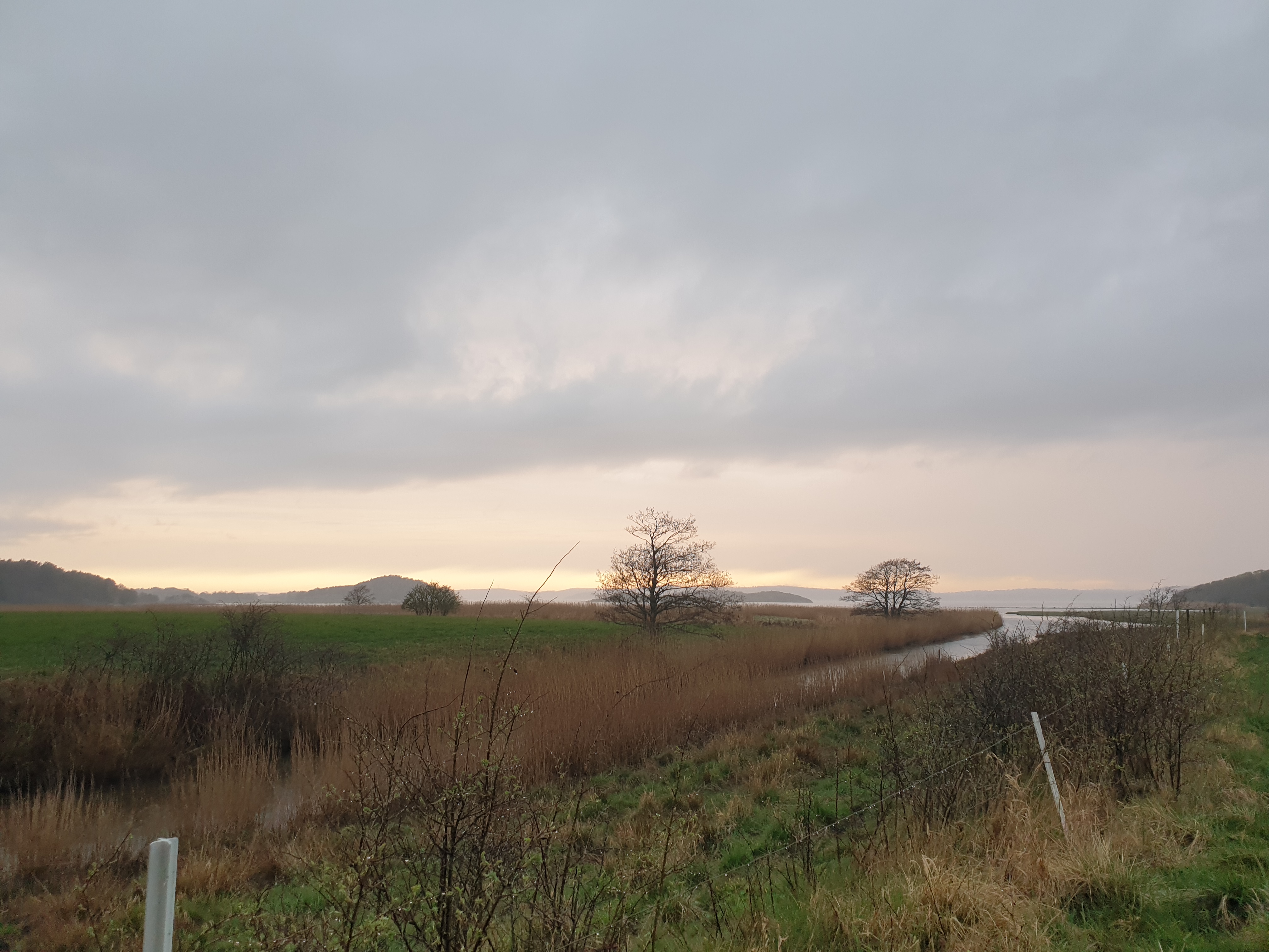 Just som vi gav upp och gick mot bilarna sprack himlen upp och när vi åkte därifrån var himlen helt fantastiskt intensivt gul-orange. En sån där riktigt magisk solnedgång över havet. Och gässen flög.