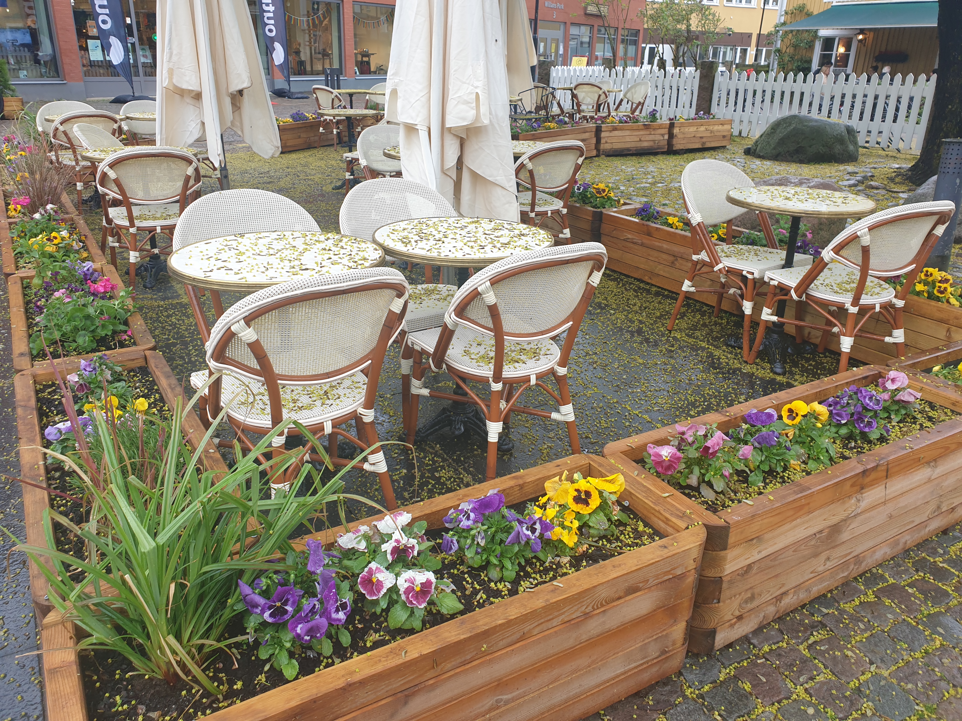 Efter dag ett i närheten av ett ställe med det så vackra namnet Väckelsång åkte jag in till Växjö centrum, där vi tog en liten stadspromenad. Det var pandemi-tomt på gågatorna, men det såg ändå mysigt ut. Mycket utsmyckningar med blommor och fina, eller i alla fall intressanta, skulpturer här och var.