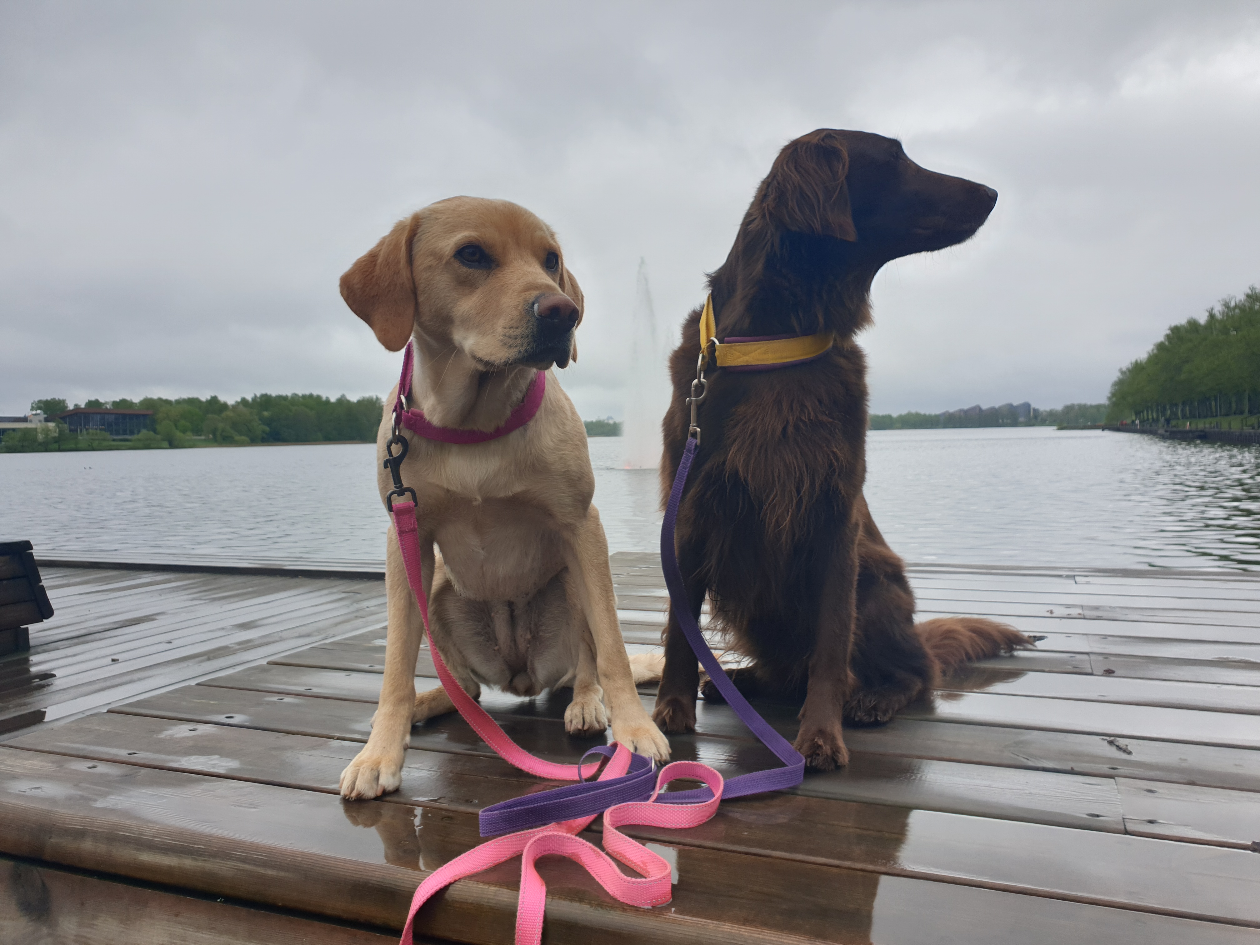 Jag blev verkligen vrålförtjust i den där rundan runt sjön. Den skulle jag gå varje morgon och kväll om jag bodde i den här staden, vilket jag mycket väl skulle kunna tänka mig, utifrån det jag såg och upplevde. Känslan var bra, folk verkade riktigt mysiga och trevliga. Femma och Delfi fick ställa upp som fotomodeller när ett par föräldrar ville fotografera sin bäbis med hundarna. (Bäbisen verkade inte särskilt intresserad.)