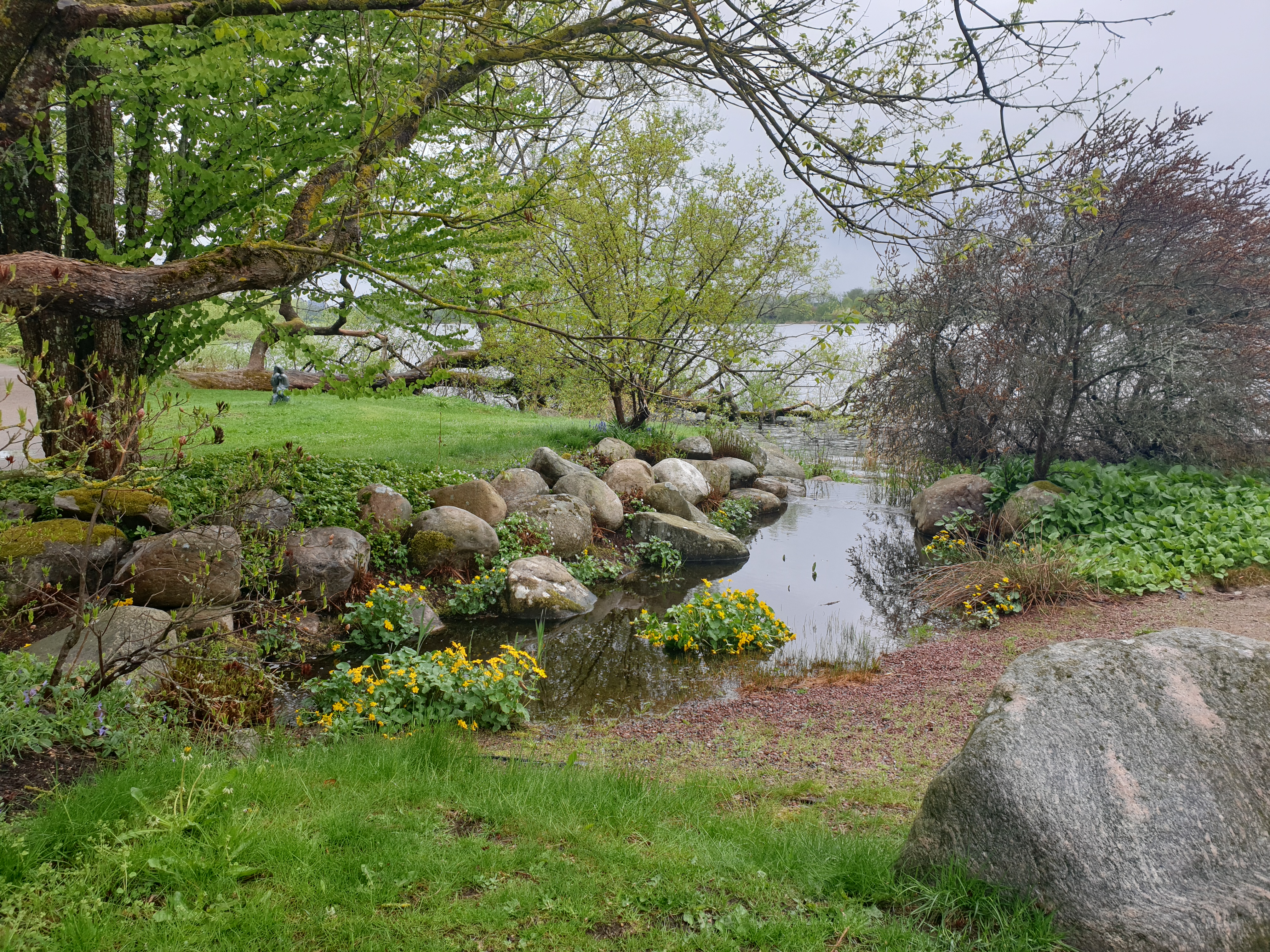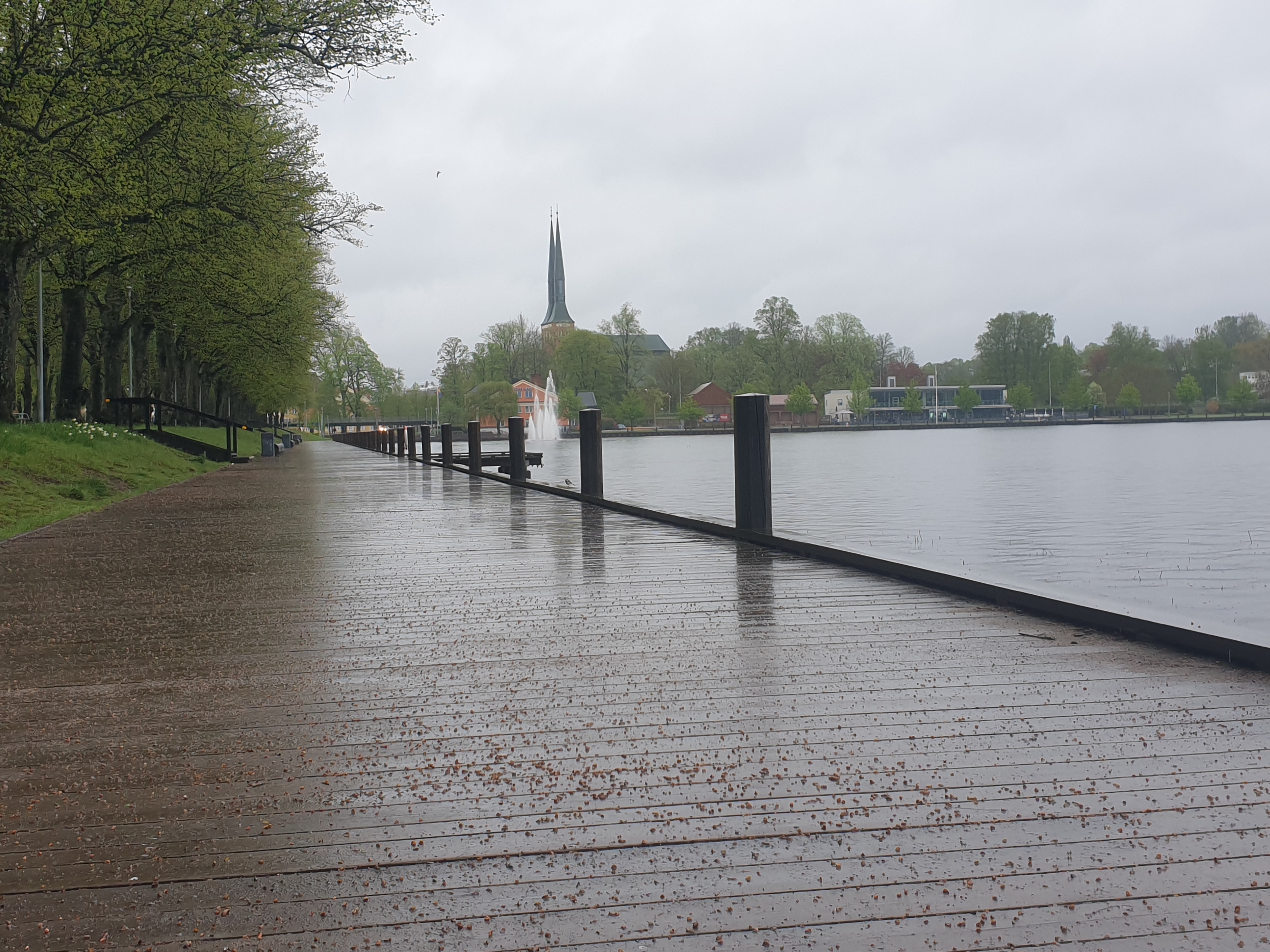 Jag hade fått tips om att gå runt Växjösjön, och den visade sig ligga alldeles nära centrum, så stadspromenaden gick över i en riktigt naturskön dito runt en alldeles lagom stor sjö – ungefär lika stor som vår Kroksjö därhemma, men med jättefin gång- och cykelväg hela vägen runt.