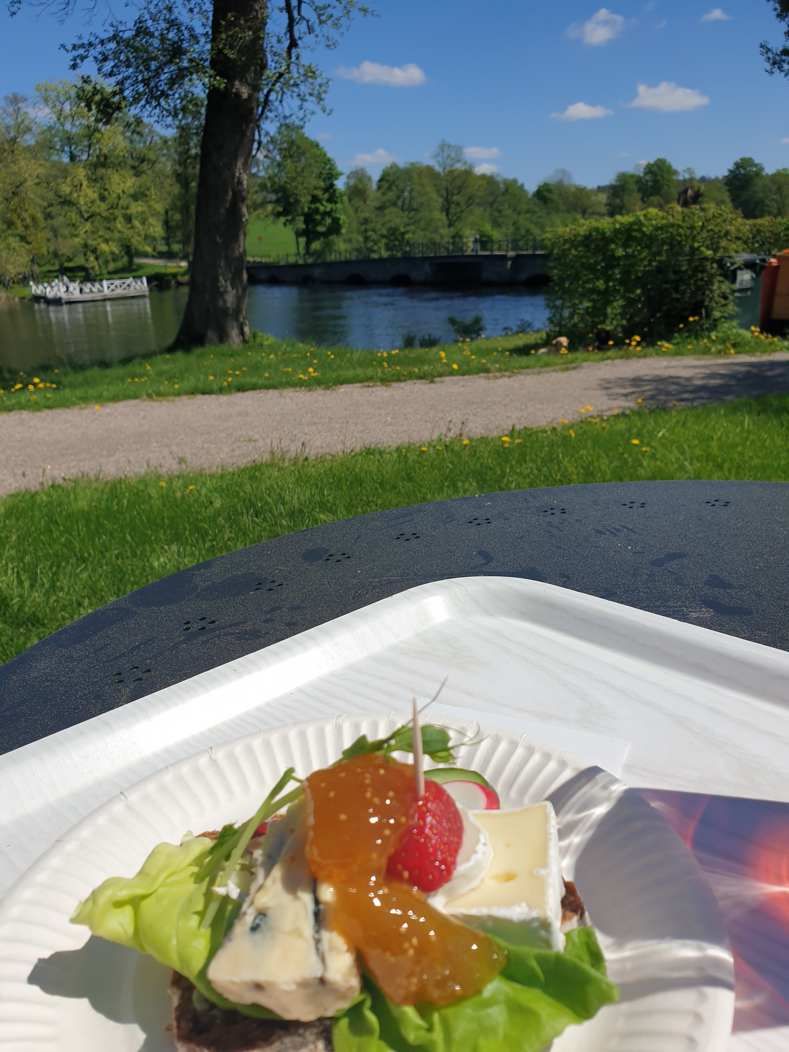 Det var så härligt väder också, och tidsmässigt blev det helt perfekt med en paus på Nääs konsthantverkscafé för en liten, men naggande god lunchsmörgås, ett glas jordgubbssaft – och min absoluta favoritglass av alla, POP74… Bara det att jag kände mig tillräckligt trygg att sätta fast mina hundar i en buske och be en random människa vid ett bord att hålla koll på dem medan jag gick in och handlade. Bara det! Floda gör mig gott.