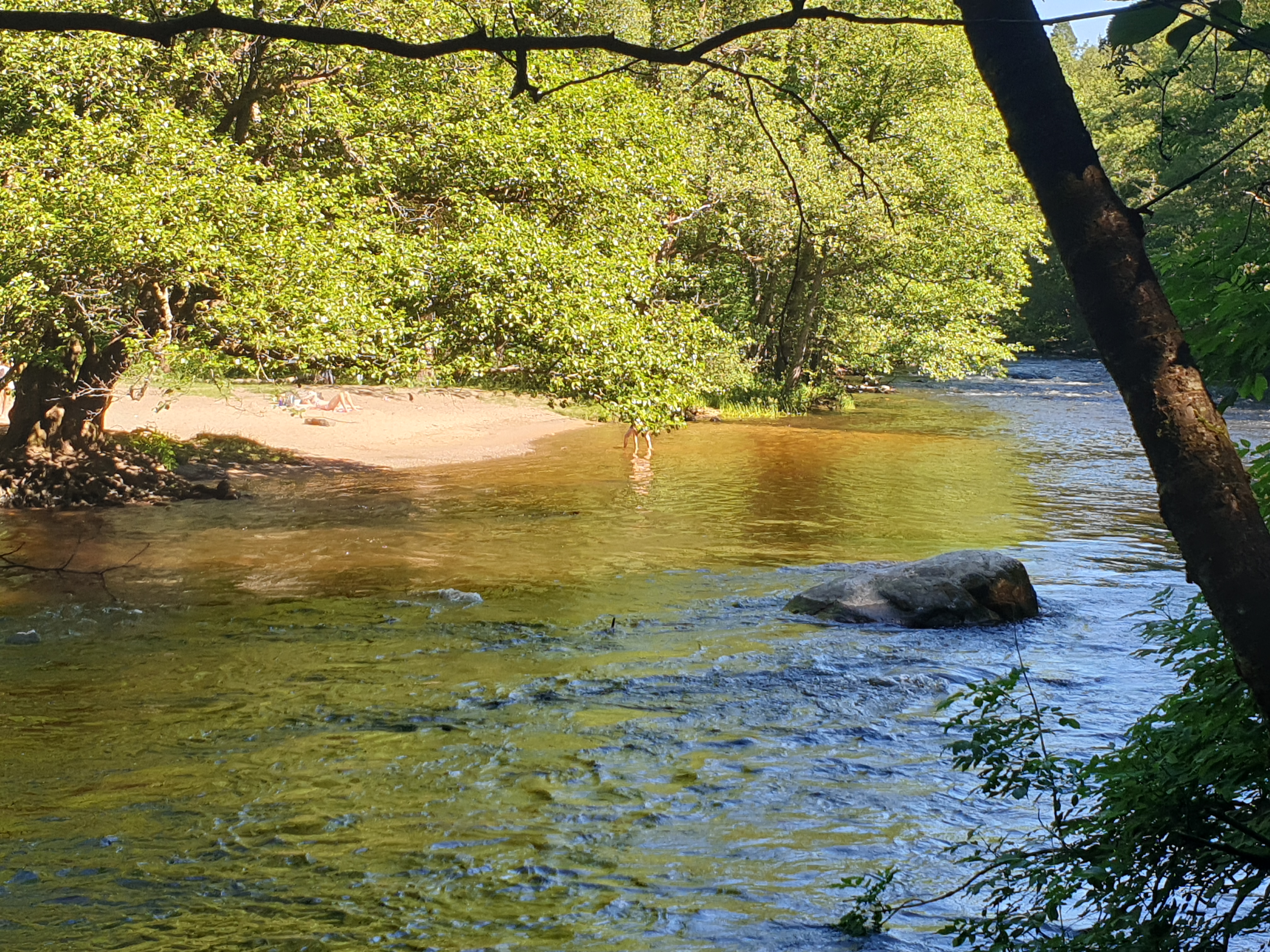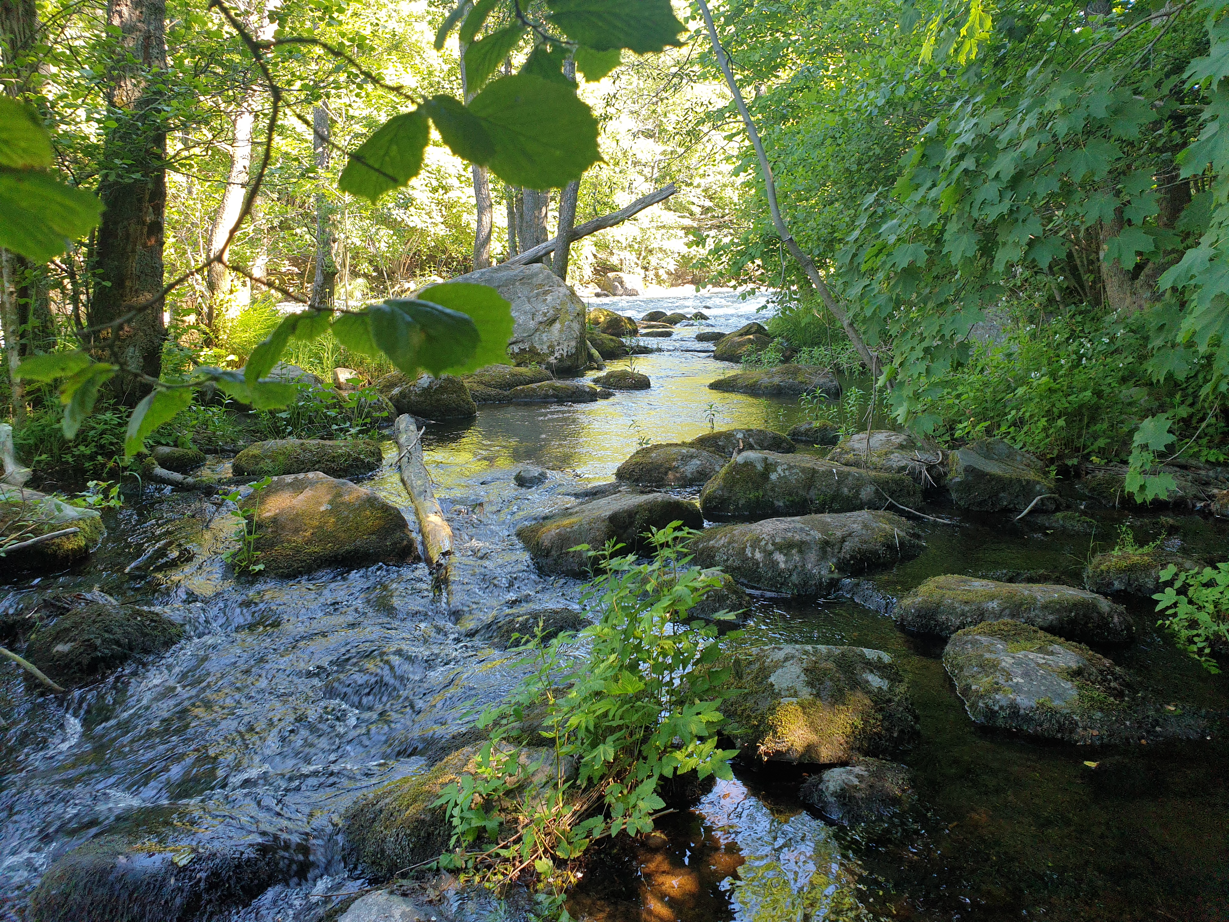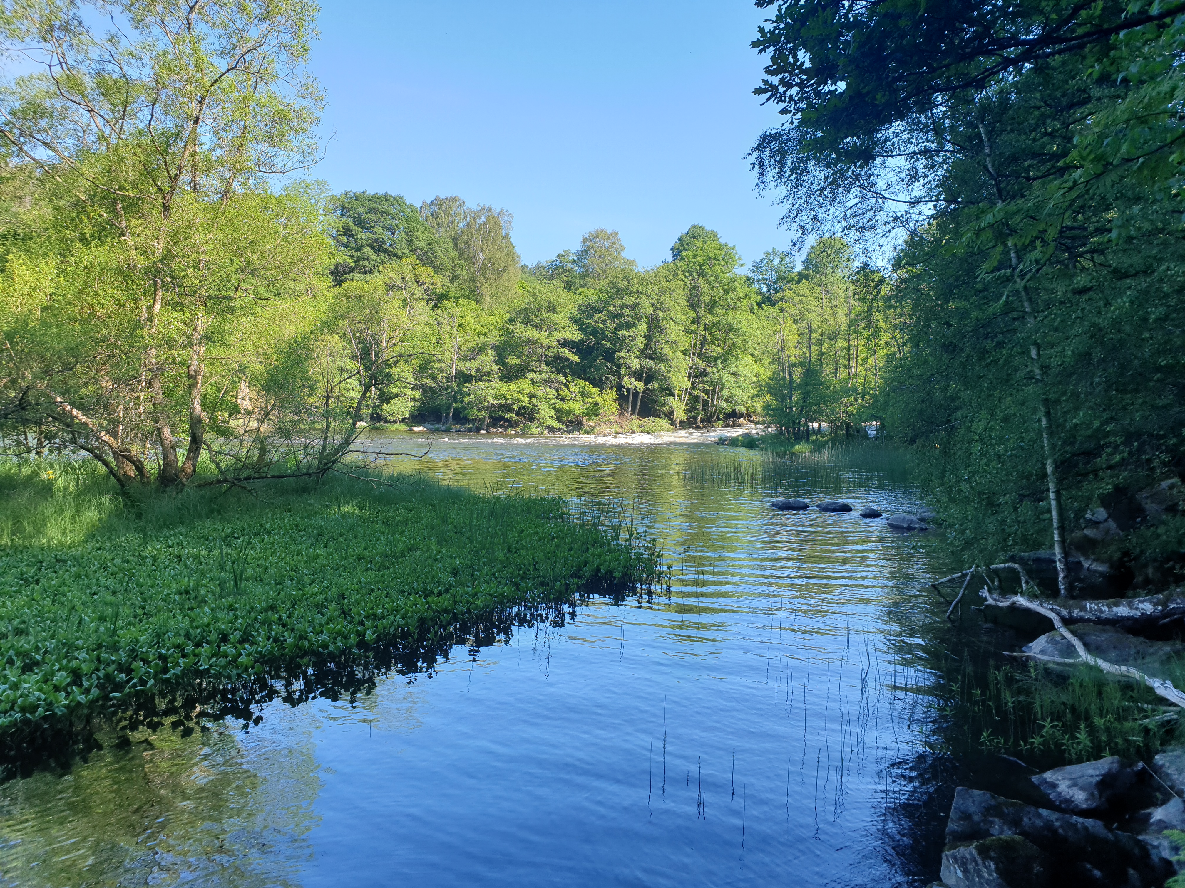 Torsdag: Solen gassade från klarblå himmel så jag valde att åka till Floda och gå längs Säveån mot Stenkullen. Jag har inte gått där sedan 2015, och anledningen är nog att jag inte är så förtjust i att gå fram- och tillbaka-rundor, och särskilt inte när man måste vända utan att ha fått ut någon ordentlig promenad. Så kändes det när jag gick vid Sävelången senast. Men nu…! Nu hade de anlagt en helt ny led, Gotaleden, som går ända från Göteborg till Alingsås, och av vilken detta bara var en liten del. Jättefint anlagd, med spångar och trappor och härlig, spännande natur längs med ån och forsen. Rena djungeln är det, och helt plötsligt ser man en liten sandstrand på andra sidan av ån – och nog finns det en ordentlig bro över dit. Lite här och där gick det fågelskådare med stora kameror och spanade efter forsärla och/eller kungsfiskare.