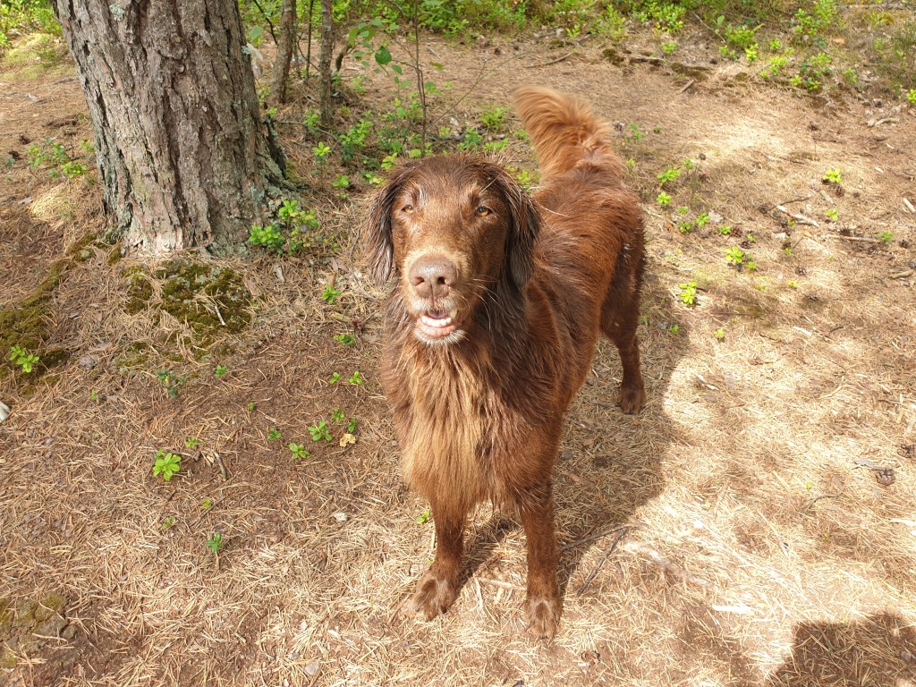 Och idag har Delfi varit utan rimadyl i en månad – hon går med på våra längsta promenader och får då och då vara med på jaktträning och även hämta en och annan apport, inklusive markeringar. Hurra!