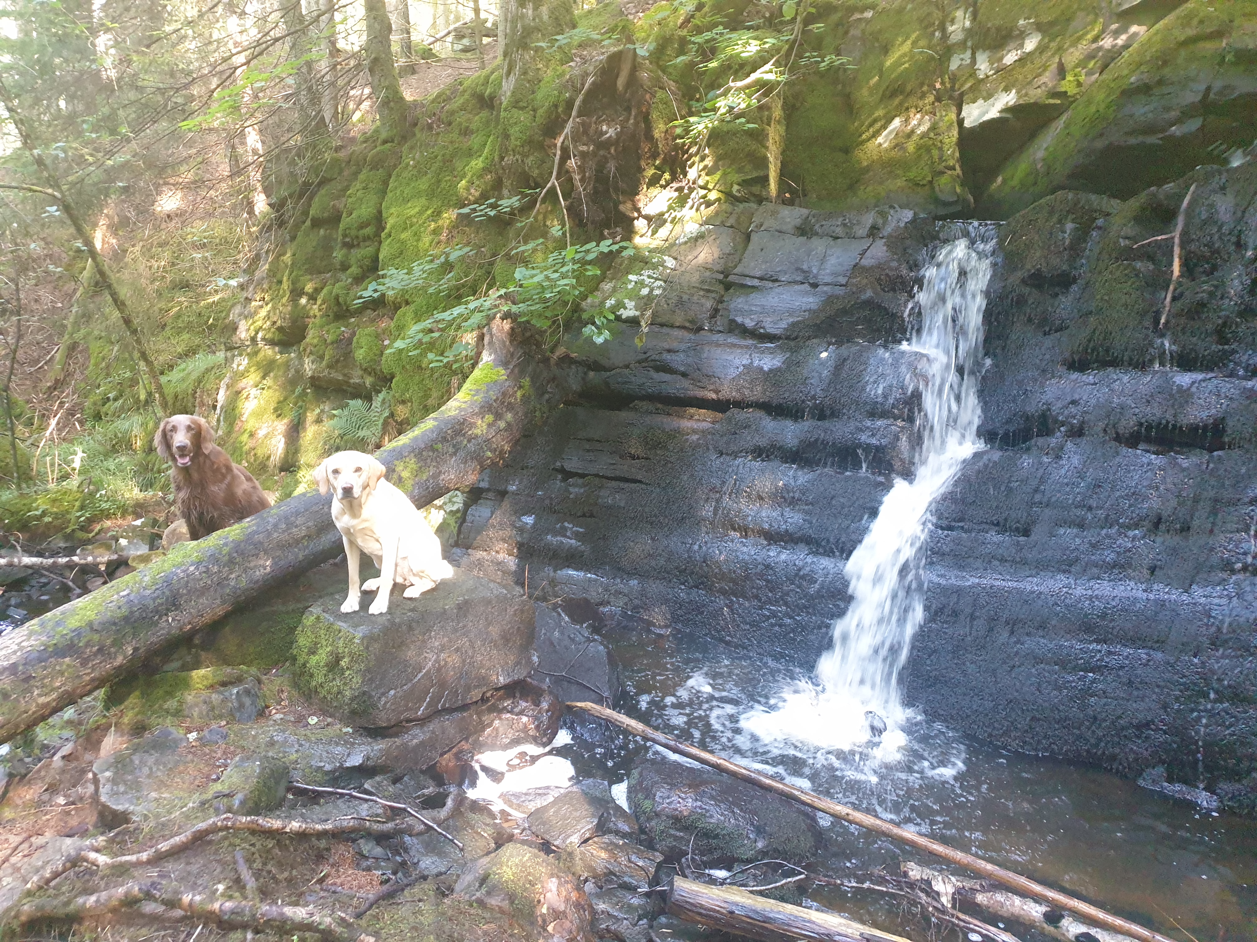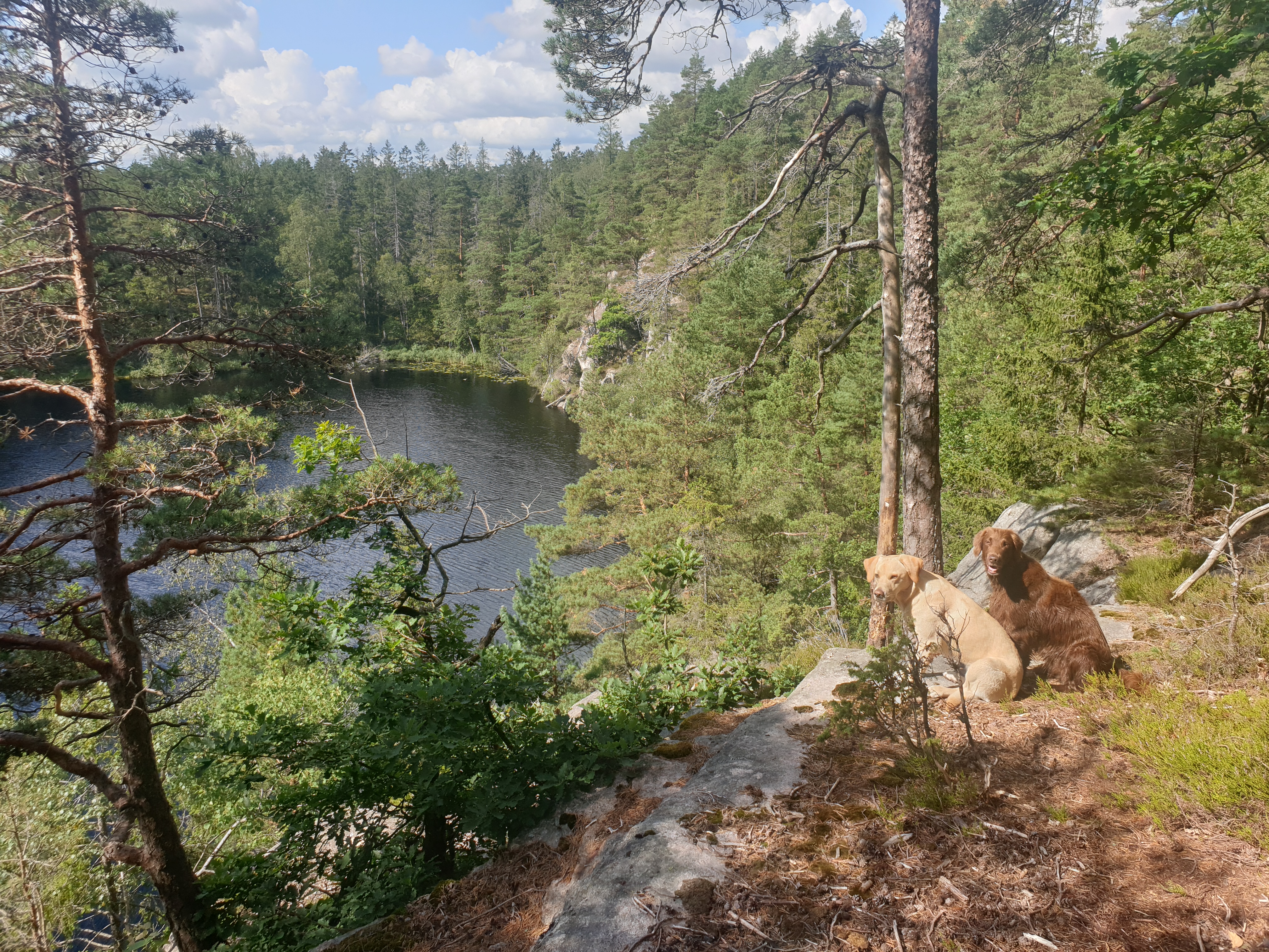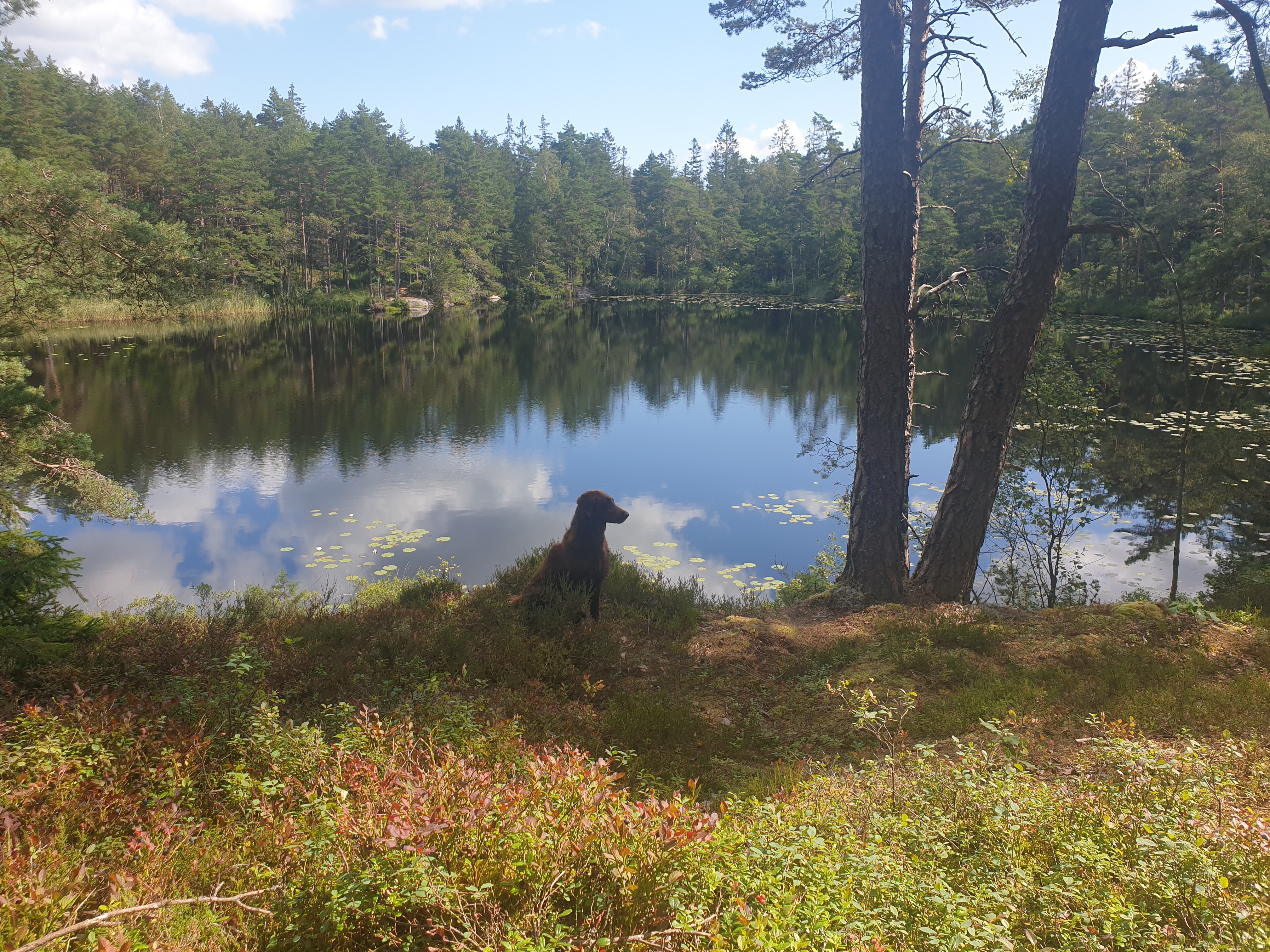 Ska jag välja ett par favoriter blir det Bergsjön och Väggen, den branta stigen upp till Klevsjöloft. Sedan har vissa promenader och sjöar inbjudit till träning med hundarna, och vi har fått till flera bra träningspass.