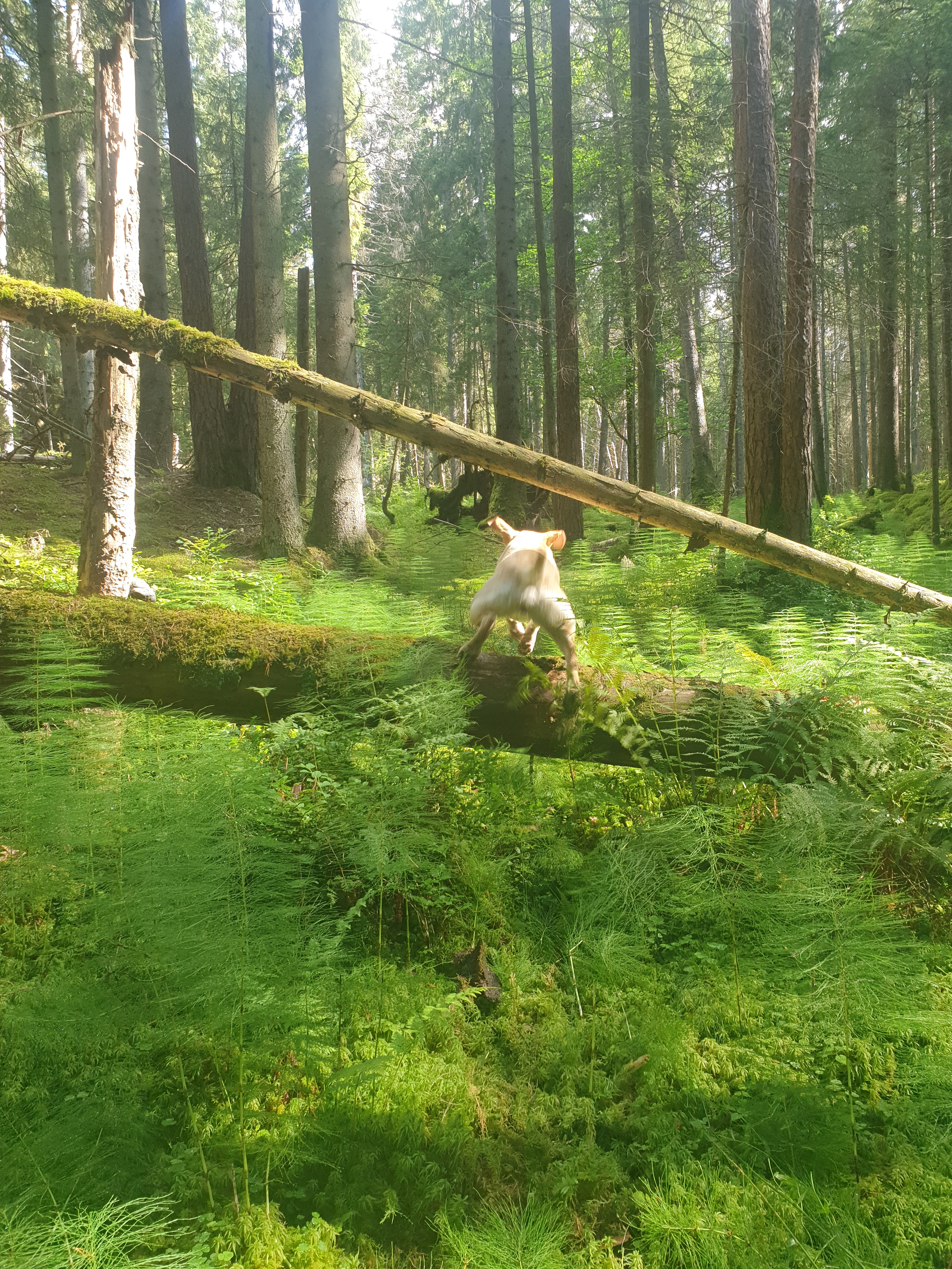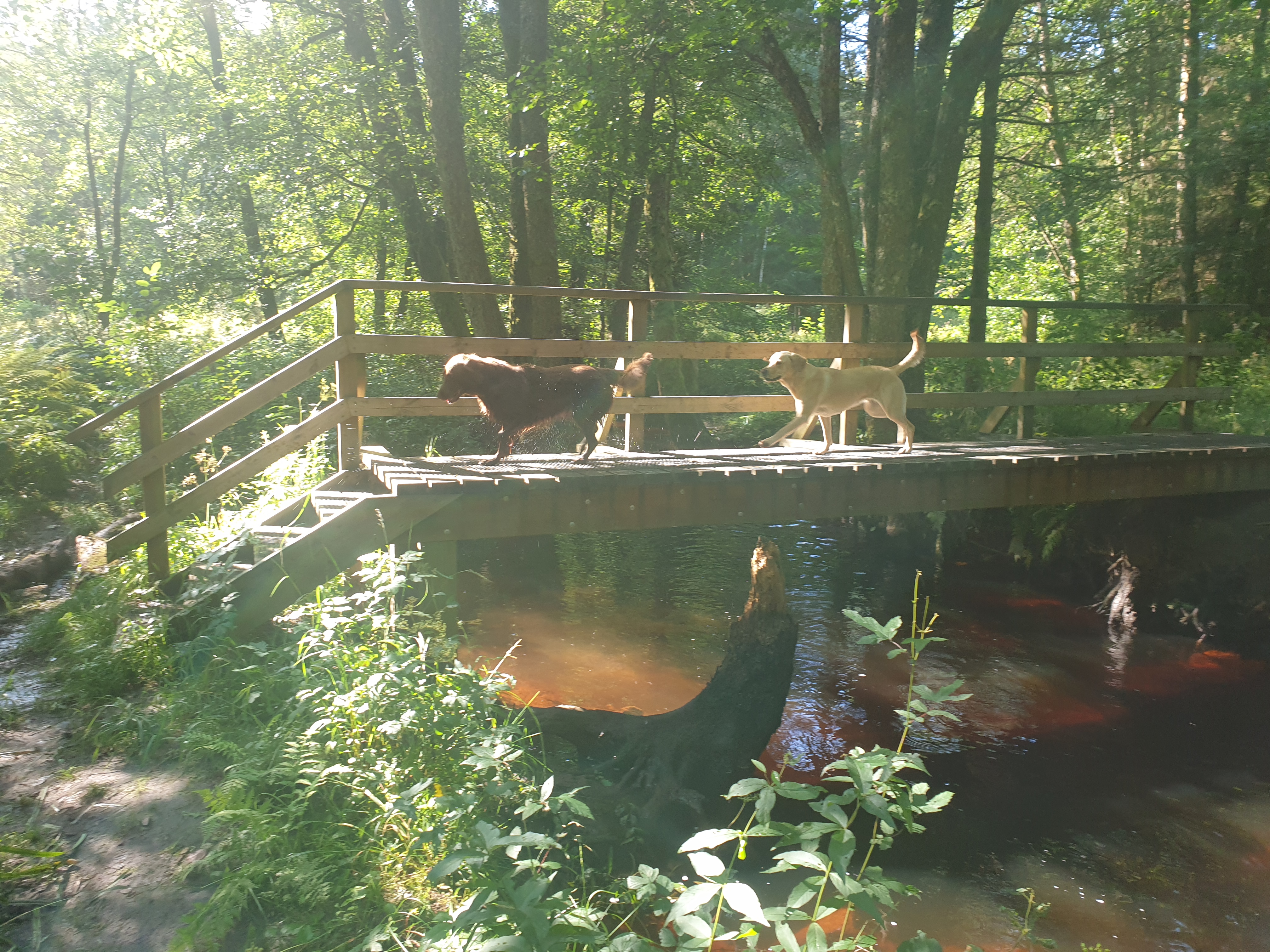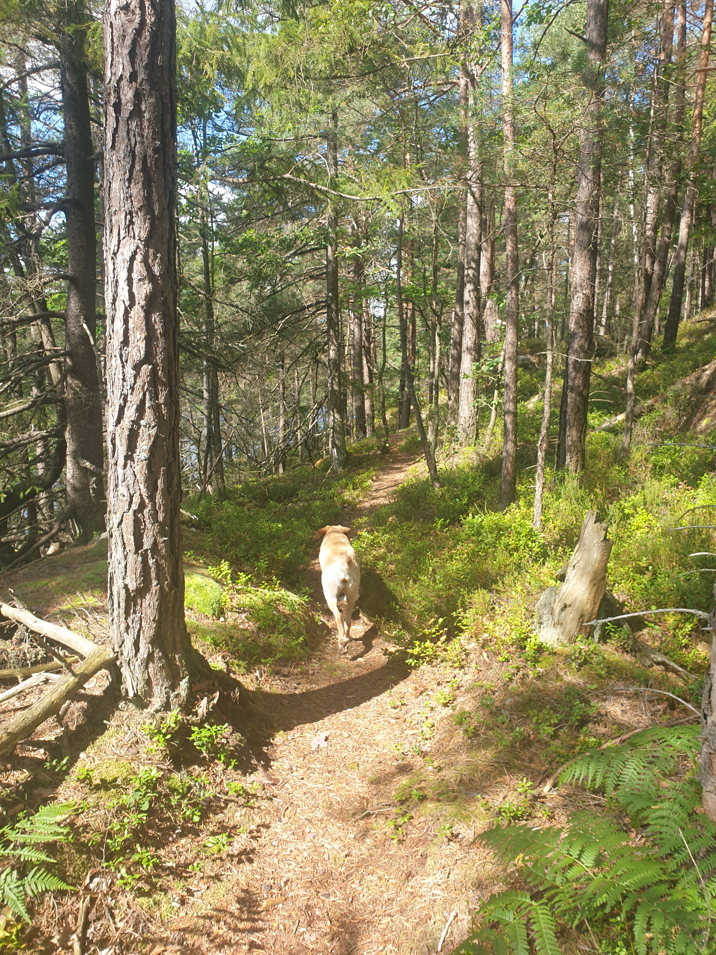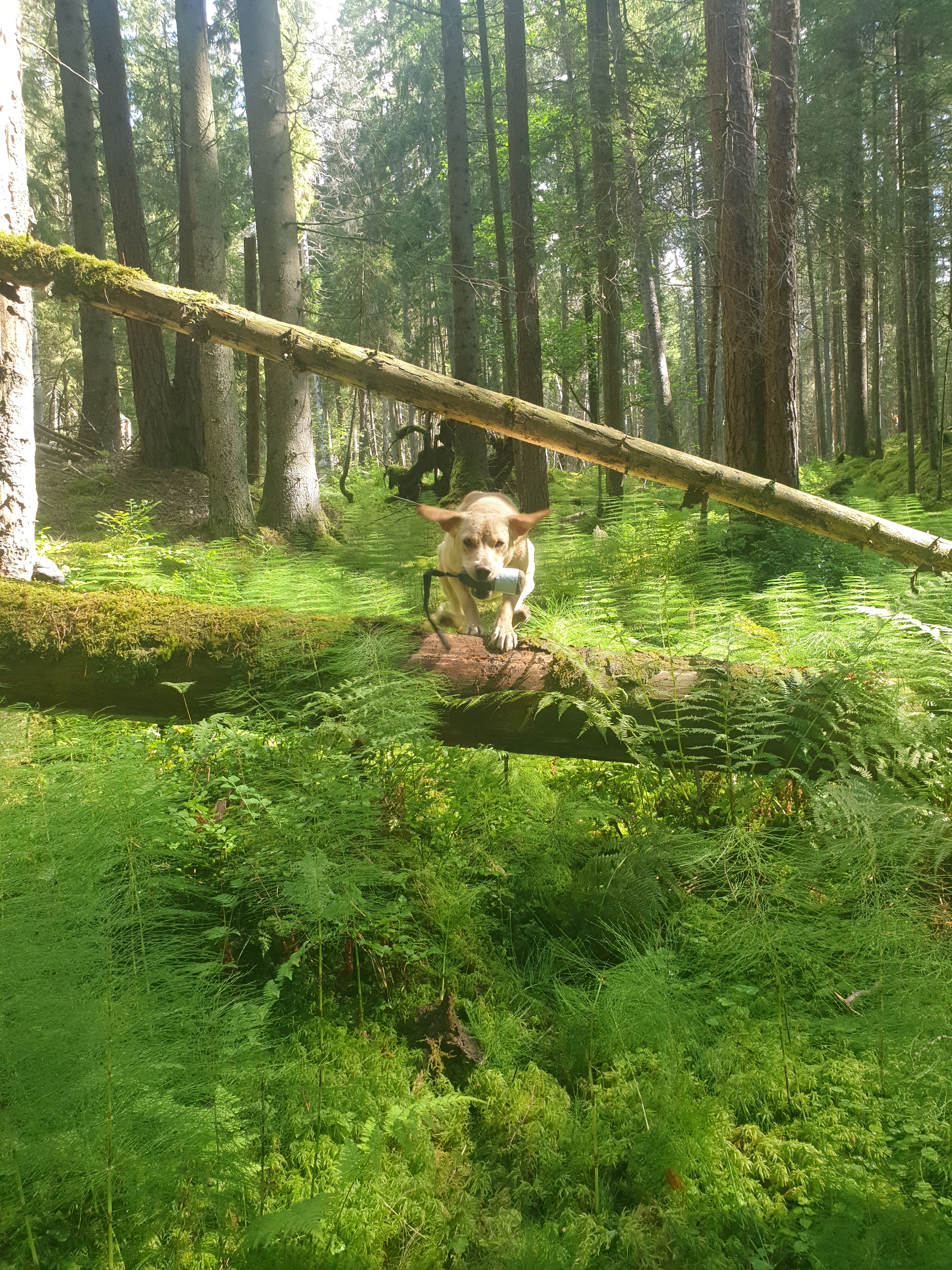 Ska jag välja ett par favoriter blir det Bergsjön och Väggen, den branta stigen upp till Klevsjöloft. Sedan har vissa promenader och sjöar inbjudit till träning med hundarna, och vi har fått till flera bra träningspass.