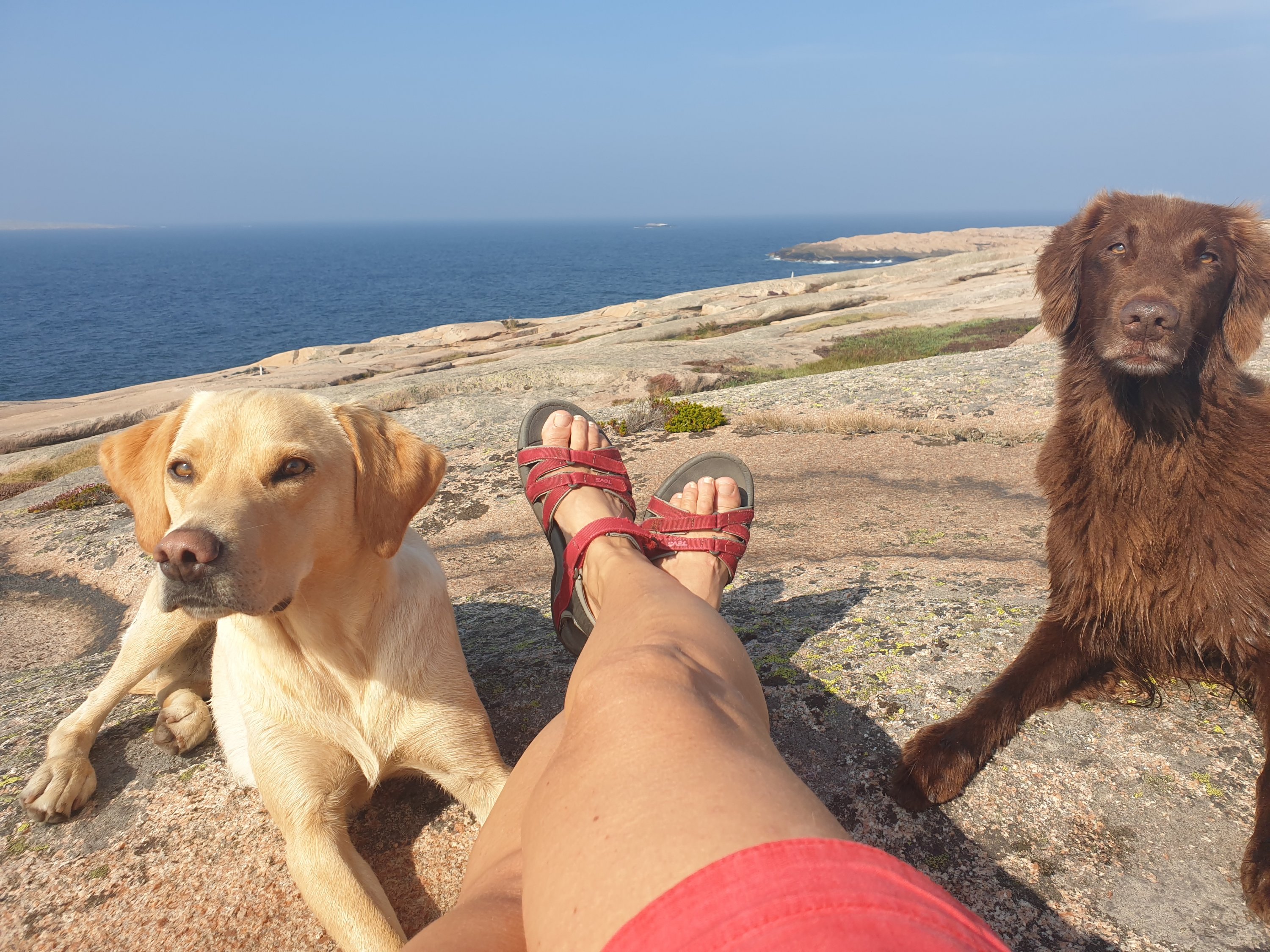 Än en gång bjöd september på högsommarväder, och jag tog än en gång med hundarna och åkte uppåt kusten, och tog en lång promenad på klipporna i Ramsvikslandet. Vi klättrade, utforskade, badade (inte jag!), softade… En riktig fånga-dagen-dag. På morgonen hade jag fått veta att en av mina kolleger i Lux gått bort, alltför tidigt.