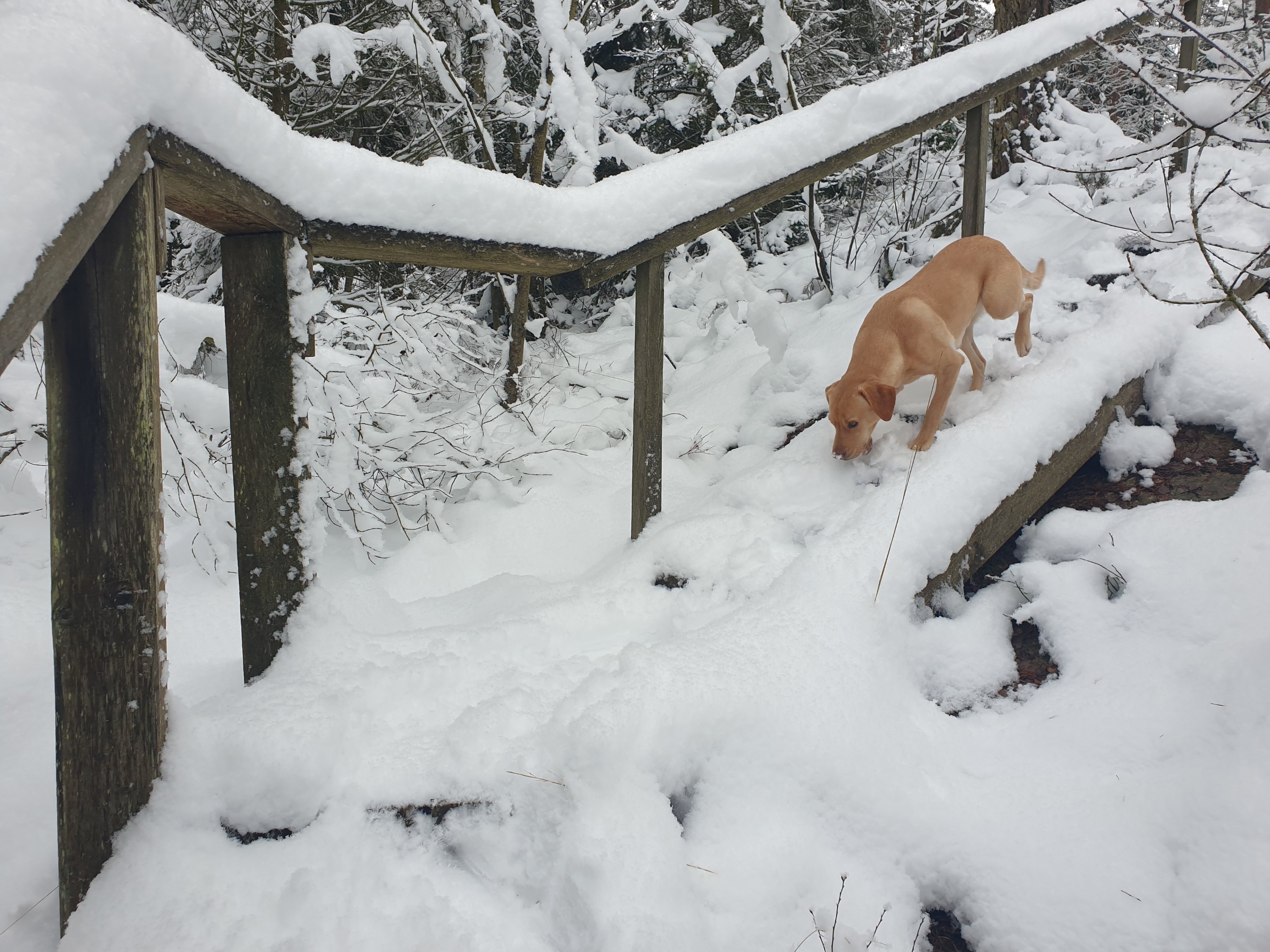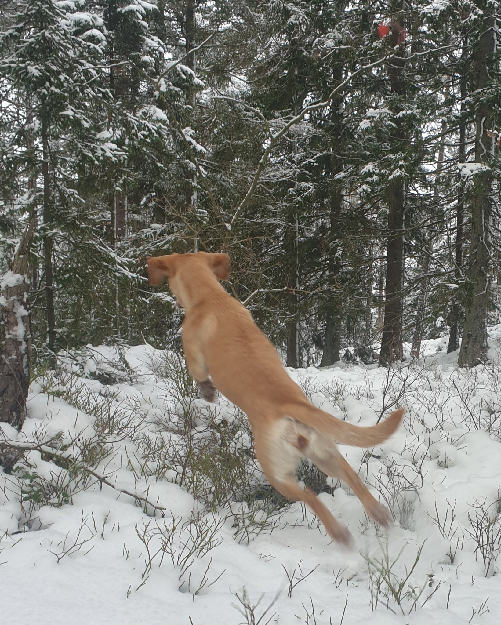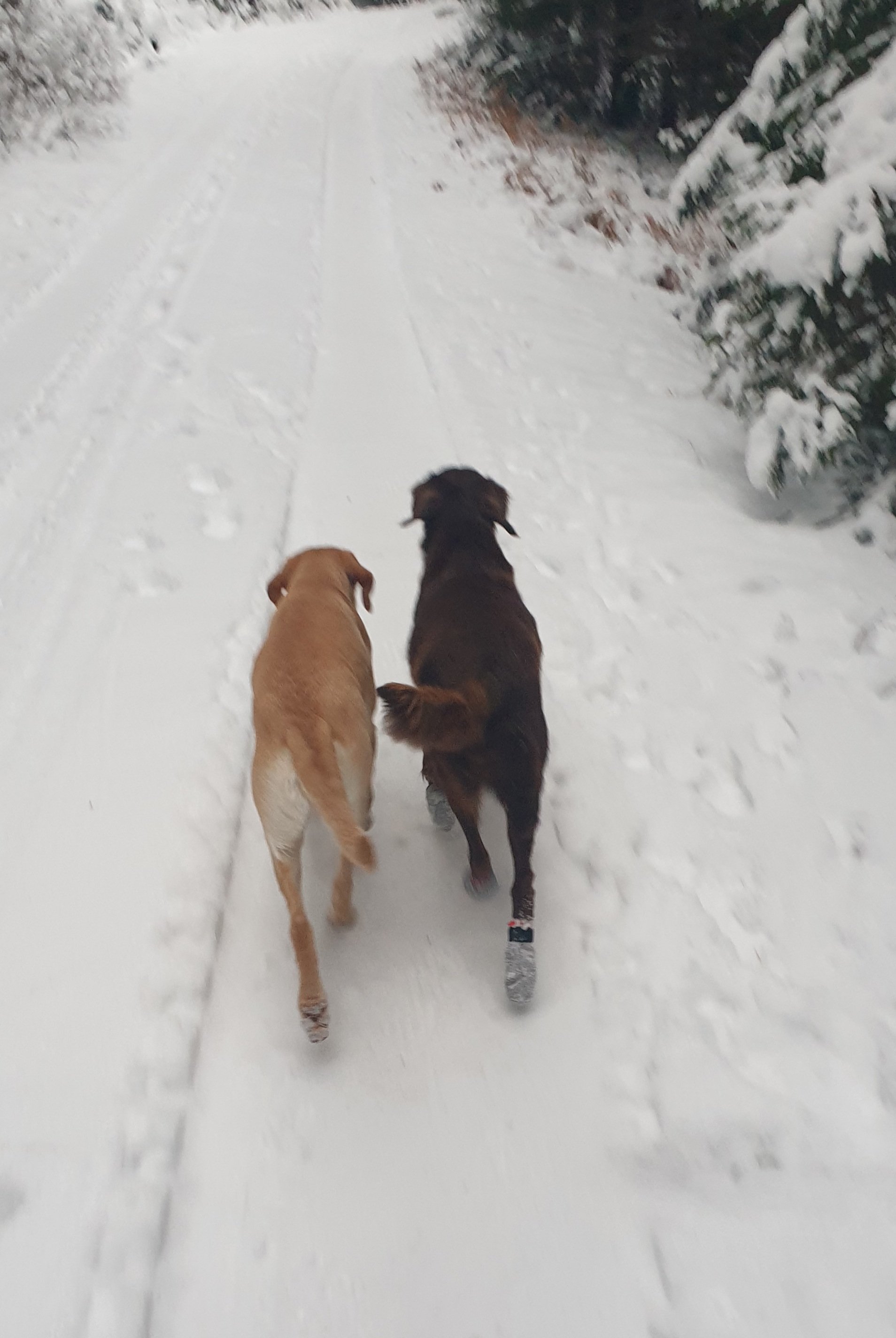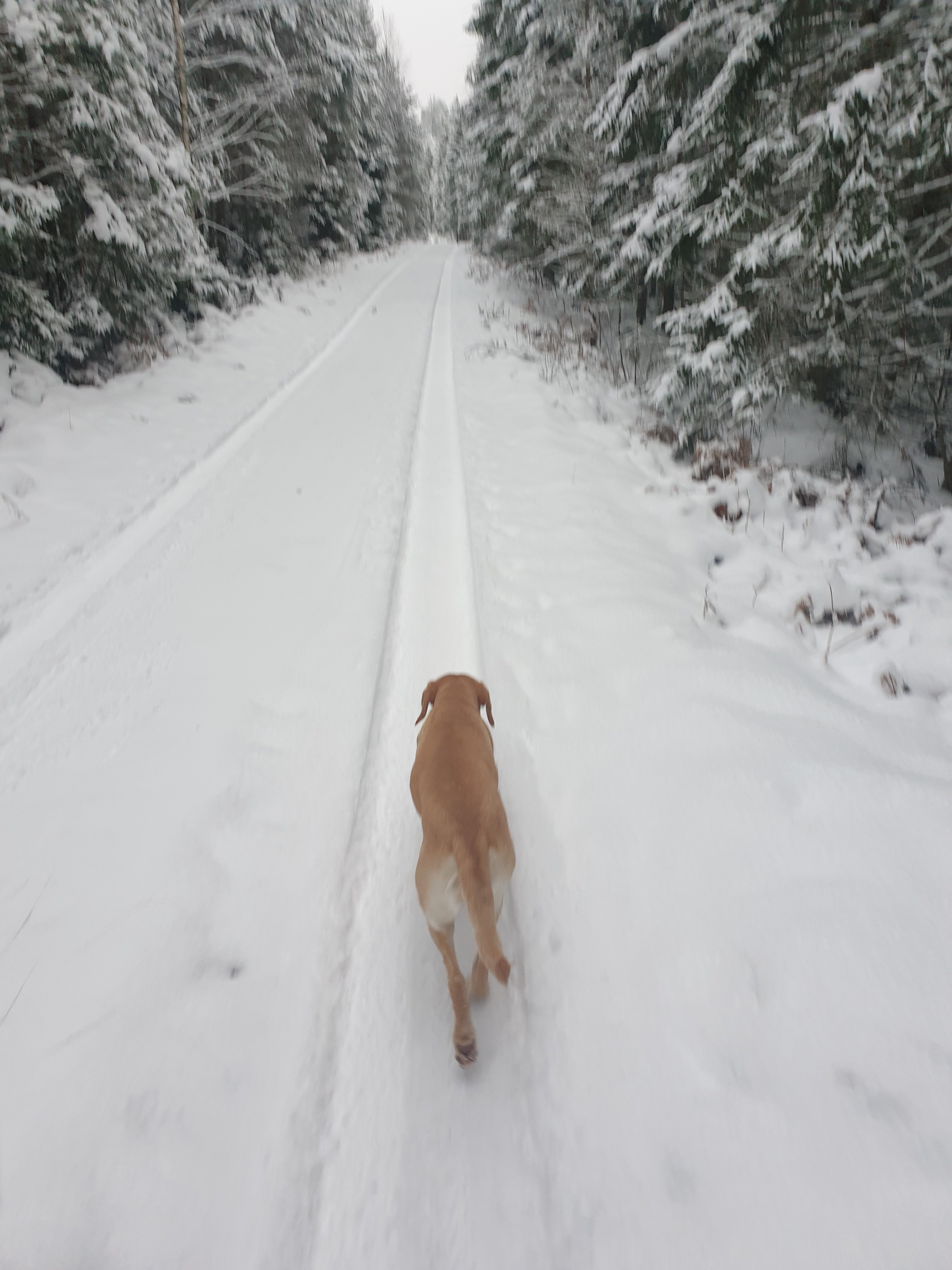 Jag tröstar mig med att jag alla fall njöt medan snön låg. Pulsade fram på långa rundor – och när Delfi fått nog (jag är fortfarande rädd att överanstränga hennes leder) tog jag med mig Femma ut på en extra runda, exempelvis runt Kroksjön.