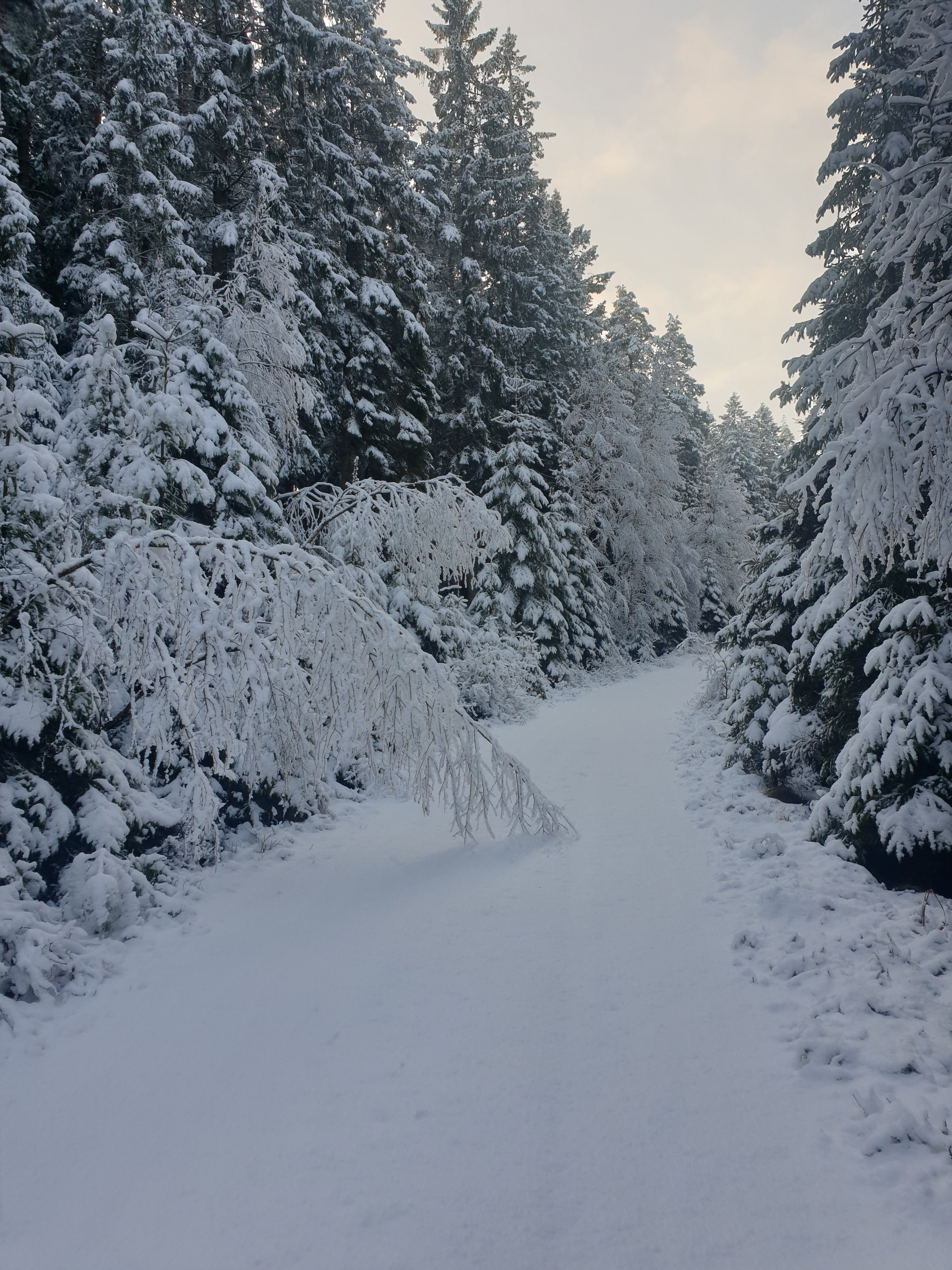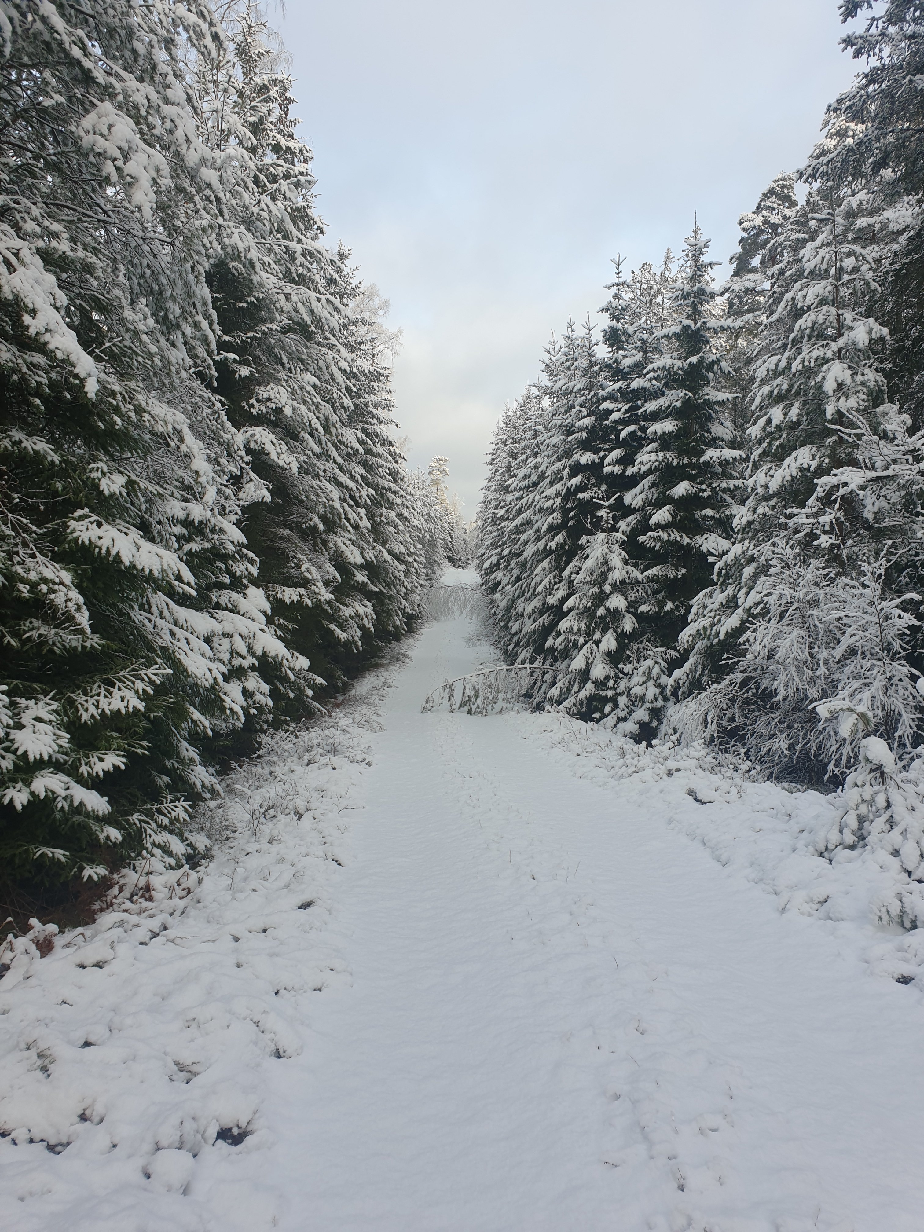Och då syftar jag inte på något negativt, som snöovädret som viner på tvären ute på fältet. Hundarna och jag har landat i soffan efter en rejäl runda runt Kroksjön och snön blir nog inte långvarig, eller så blir den det och det får väl gå, det med. I helgen hade vi i alla fall vacker snö-skog att gå våra promenader i, och det gav extra arbete åt muskler och ordentligt flås igen. Jag tackar och tar emot!