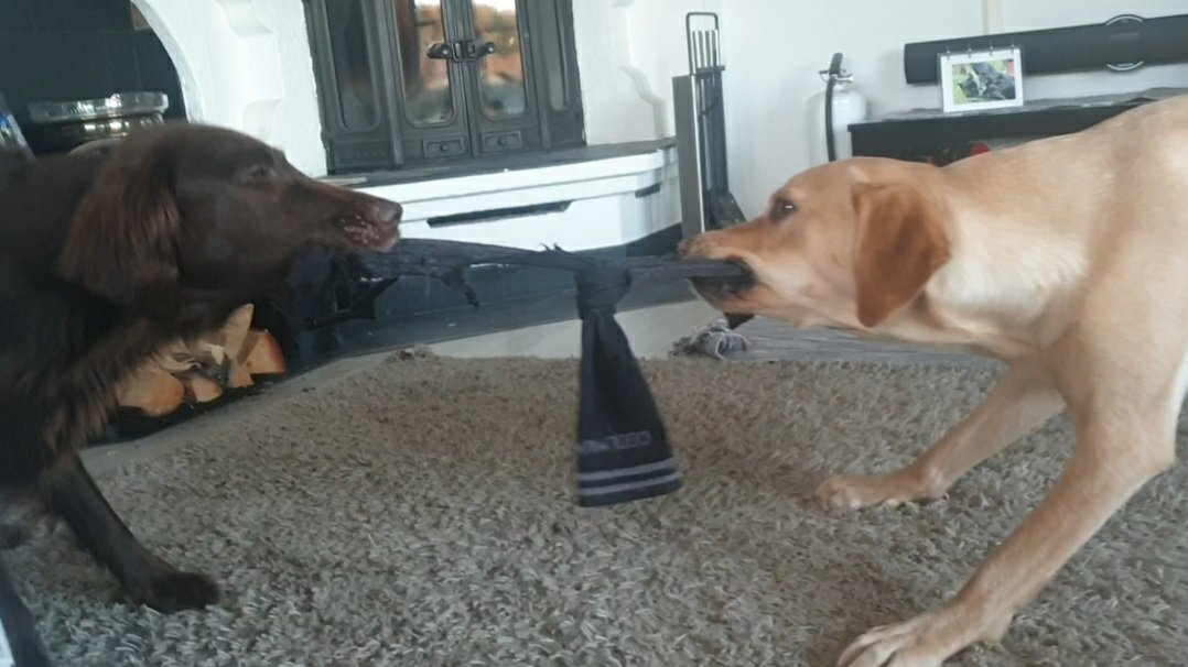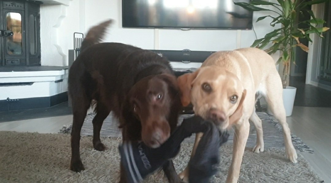 Hos hundarna har det också smugit sig in en förändring: mycket bus! Förr om åren, när jag hade två svarta flattar – först Ella och Saga, sedan Saga och Piaf – då fick jag ju mig flera goda skratt varje dag (och det behövde jag!), tack vare hundarnas vilda lekar.