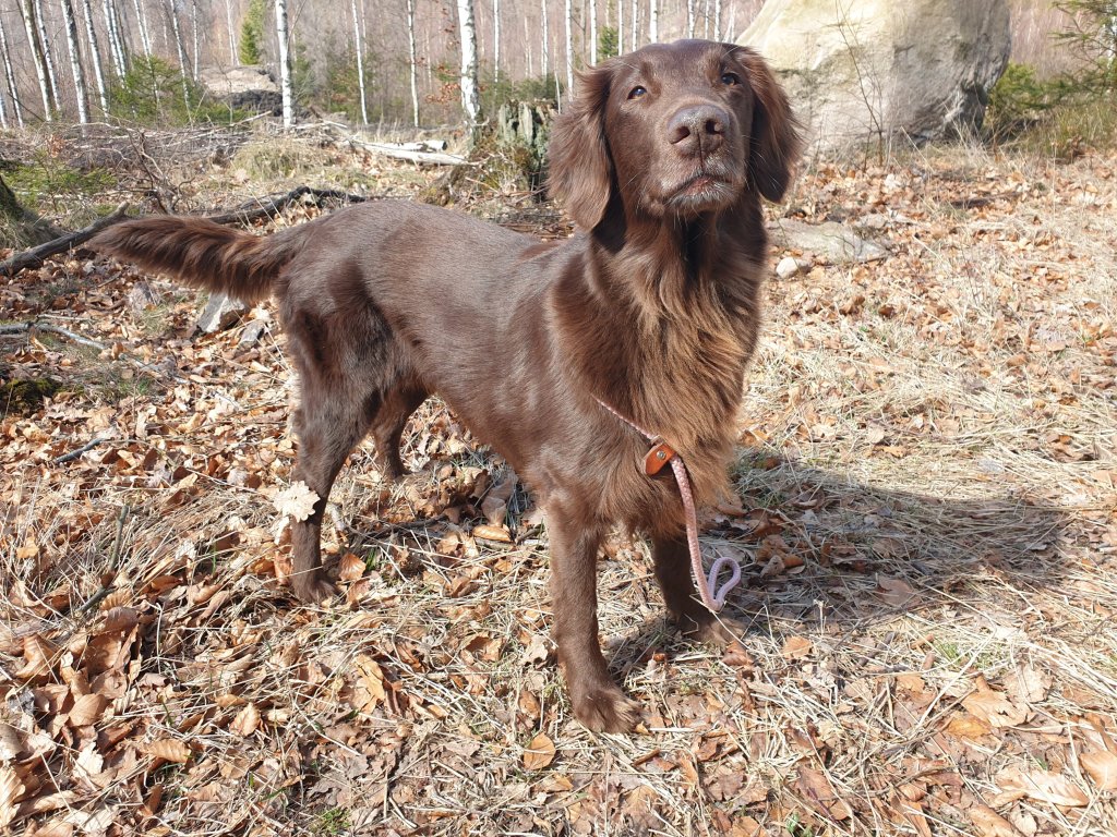 Hennes dirigeringar blev dock också väldigt om omständiga – både pga terrängen och pga avstånden, dvs. bristfällig träning, helt enkelt. Vi blev tvungna att ge oss och fick inte in båda dummies på två stationer, och på övriga stationer blev poängen högst blygsamma… 10 – 6 – 0 – 9 – 0 = 25p. Ändå var jag så lycklig! När Delfi kom tillbaka in med den andra dummyn på den första stationen – efter en sådan där riktigt omständig dirigering – så hade jag faktiskt tårar i ögonen. Min älskade räserflatte var på banan igen. Och vem vet, vi kanske går hem och tränar ordentligt nu och ger oss ut på banan igen!