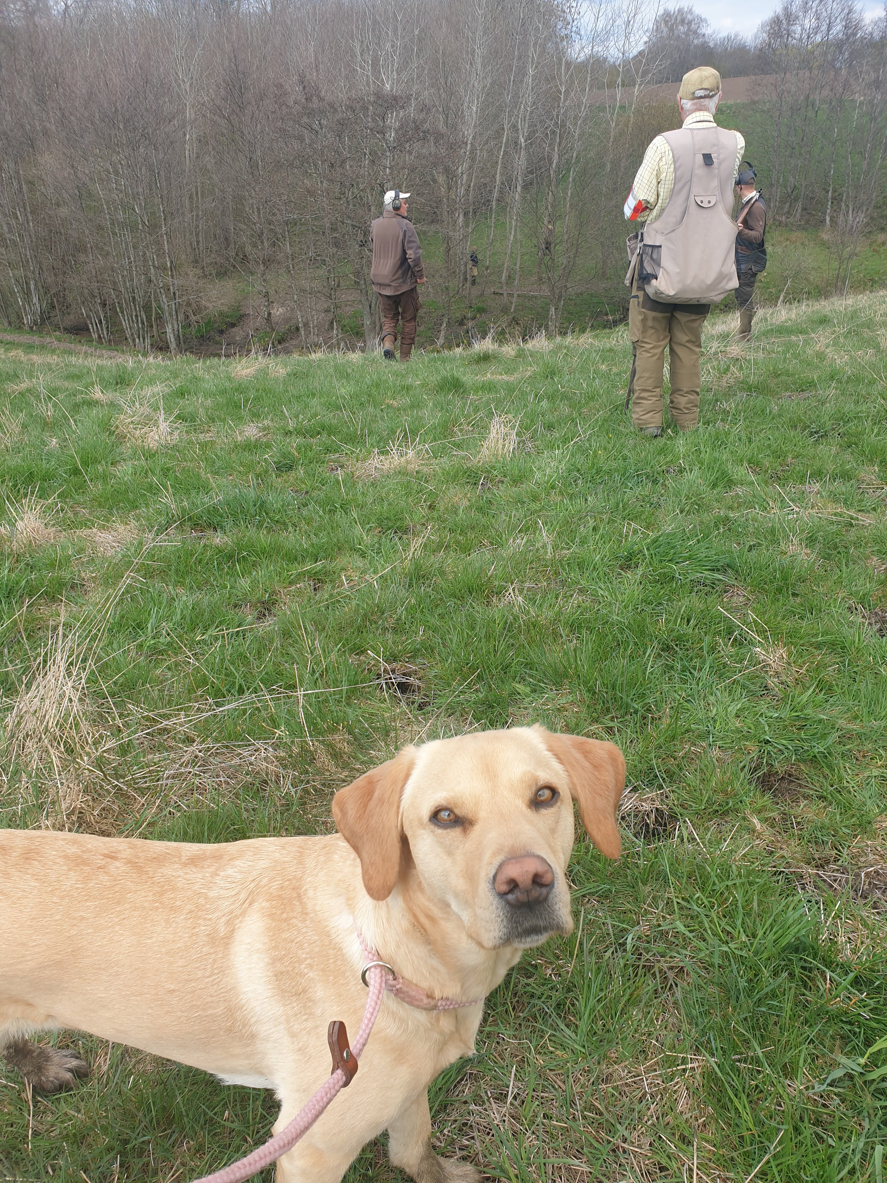 Alltså åkte vi iväg till Laholm denna lördagsmorgon och kl 10 var det samling inför provet. Lite nervigt, men mest bara kul! Femma och jag hade ett ganska högt startnummer, så vi fick börja i galleriet, dvs utanför linjen. Men det är ju mest markeringar i första rundan, så ganska snart var vi inne på linjen och därefter inne för bedömning hos det första domarparet. Femmas första två markeringar spikade hon, liksom den tredje – i andra rundan. Två av dem hade helt dolda nedslag för både mig och Femma, och jag kunde inte göra mer än skicka henne och låta henne sköta resten när hon försvann utför en sluttning och blev helt osynlig… tills hon kom mot mig med dummyn 🙂 På den tredje fick jag i och för sig springa fram till krönet för att kunna assistera henne vid behov, men just som jag kom fram så jag kunde se henne, så hittade hon dummyn. Min lilla markeringshjälte! Jag har ju sett det på träning, och rätt tidigt i hennes utbildning, att hon är grym på att markera och kompletterar med ”näsan” på bästa sätt. Så nöjd med detta! Ofta hör man hur tränare och andra proffs betonar hur värdefull en god markör är, och det är hon i alla fall: en jäkligt god markör, min lilla Femma.