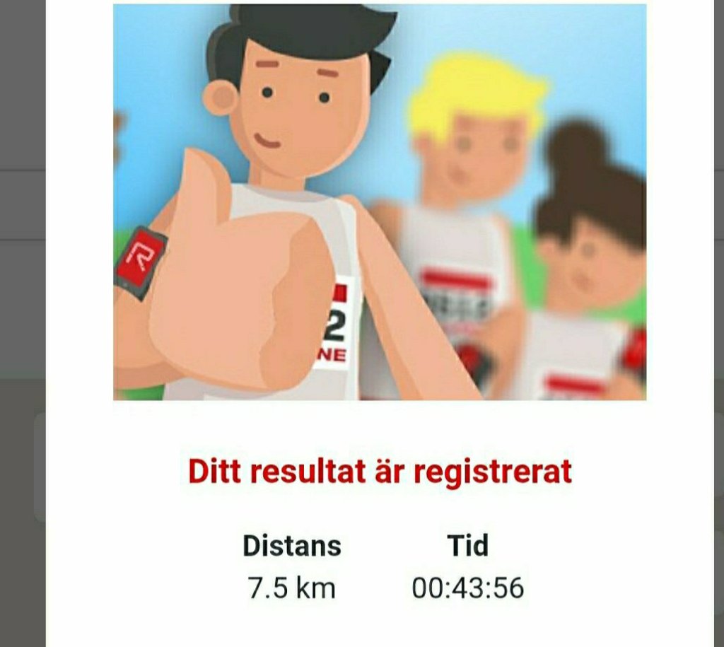 Hur som helst anmälde jag mig sent till loppet, men var helt bekväm med att springa 7,5 km. Jag hade sett att vid förra tillfället- i maj – var det bara EN person som sprang 7,5 km, så jag försökte att ragga lite fler deltagare. Än så länge är vi två som har sprungit den sträckan; betydligt fler väljer 5 km, även några som springer på riktigt bra tider. I det här loppet har ingen sprungit en mil (än så länge, med halva söndagen kvar), som ska bli min nästa distans, är det tänkt. Typ nästa år…