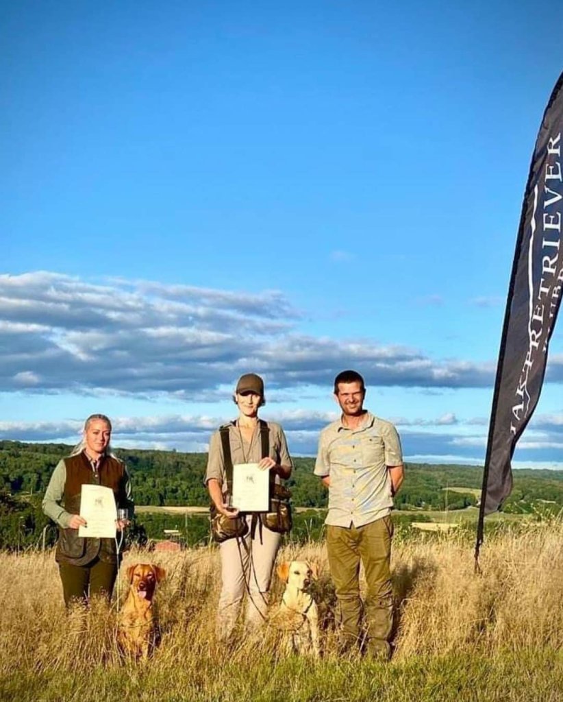 Vi fick utförlig muntlig kritik av domaren direkt efter provet, och Femma blev godkänd – hon var en av tre som klarade apporteringsprovet denna eftermiddag (bilden är lånad av JRK och på bilden saknas ett godkänt ekipage).
