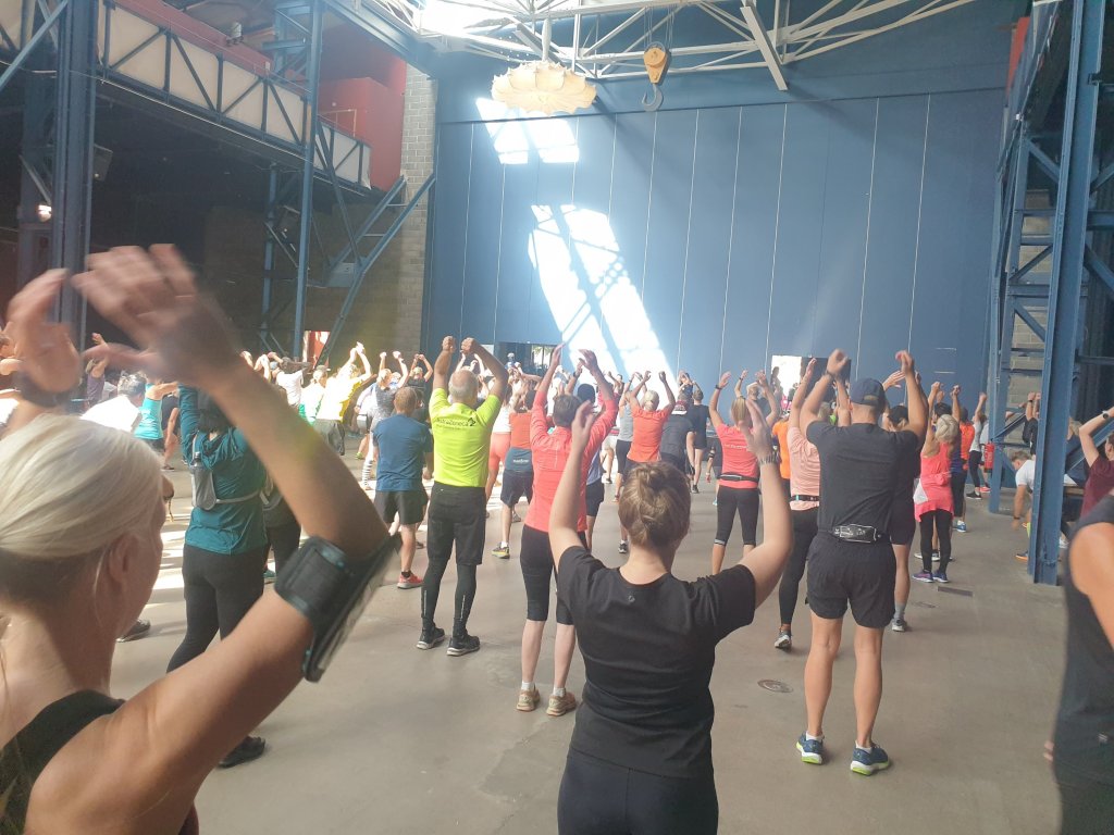Jag kom i lagom god tid till Eriksbergshallen och hämtade ut min nummerlapp, och en kvart före start fick vi lite uppvärmning till musik. Sedan ställde vi oss i en fålla, redo för start.