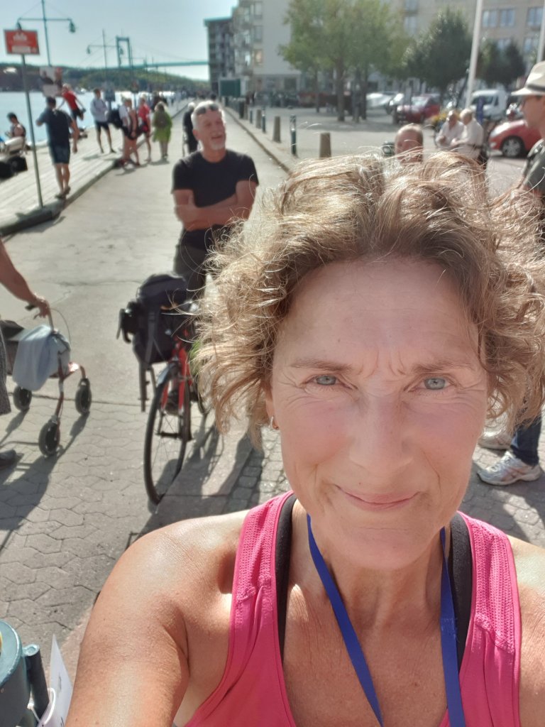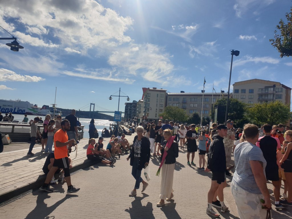 Vädret var helt underbart denna lördag – 20 grader och mestadels soligt – och det var så gött att sitta på kajkanten och chilla en stund efter loppet, mitt bland alla människor. Hur sällan är jag inte bland så mycket folk, numera?