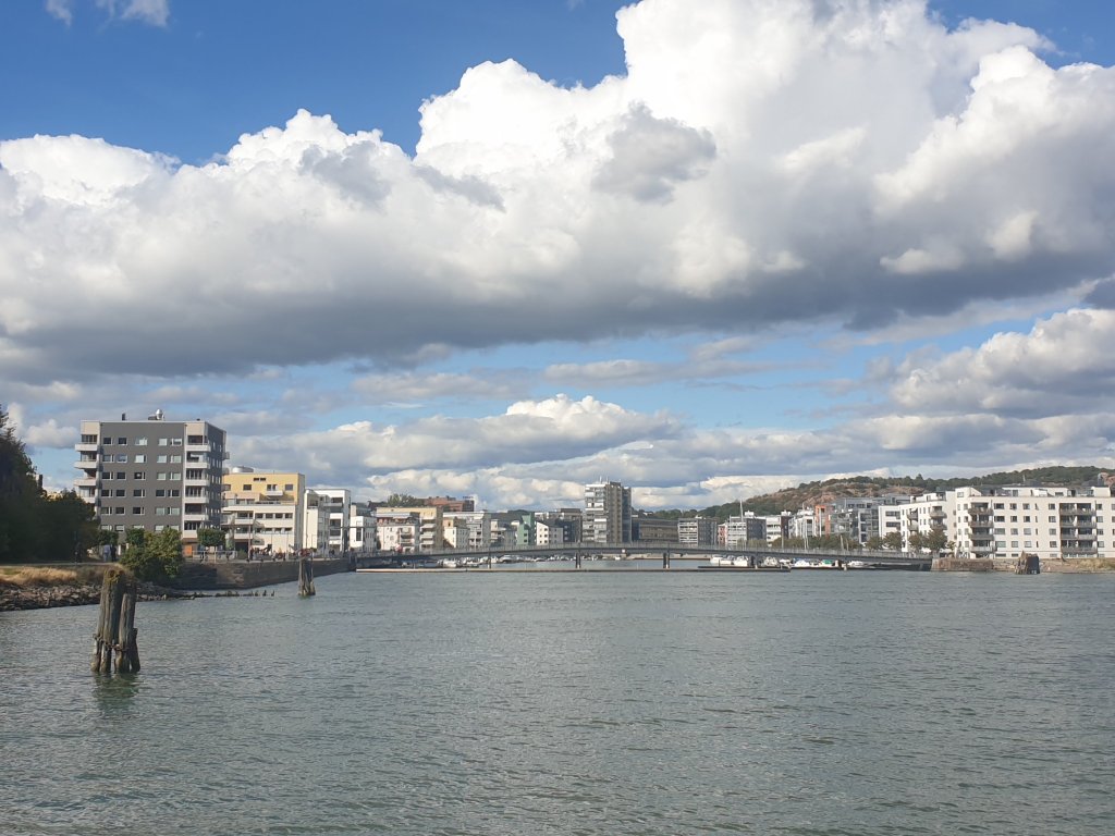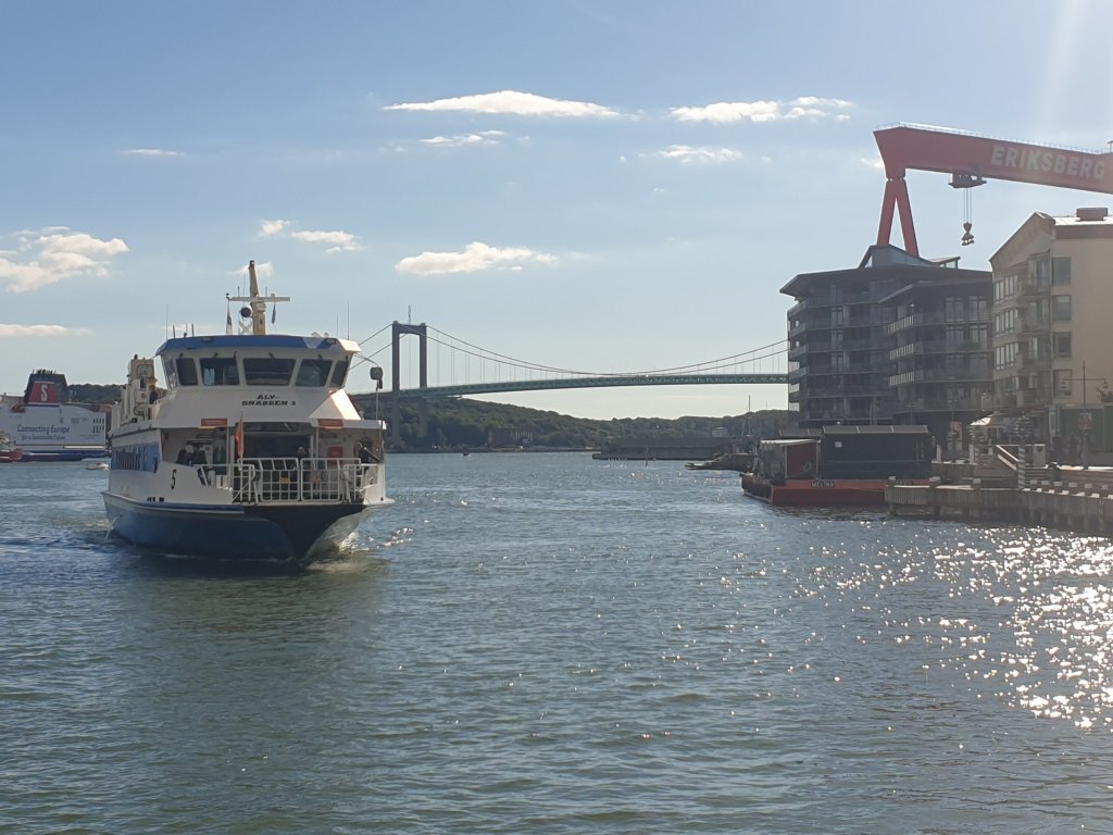 Jag hade ännu en plan för dagen, och det var att ta Älvsnabben tillbaka från Eriksberg. Jag hade aldrig åkt Älvsnabben tidigare! (Tillägg: Det där stämde inte. Jag åkte över till Lindholmen för att gå någon kurs där i början av 90-talet, innan jag flyttade till Luxemburg, det hade jag glömt…). På vägen dit hade jag tagit bussen – då åkte jag över den (inte längre så) nya Hisingsbron för första gången.