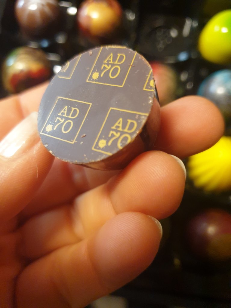 Men i lilla Lödöse, bara 2-3 mil från där jag bor, finns sedan 2021 det lilla företaget AD70, bestående av Sofia och Joakim Asklund, som tillverkar praliner av finaste choklad, helt för hand. Joakim är pralinören som tillverkar pralinerna, medan Sofia är designern som målar dem, utformar presentaskar osv.