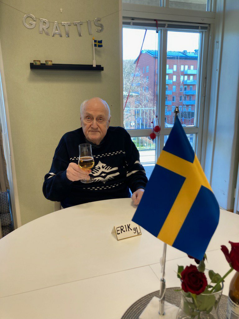 Bästa pappa har fyllt 91 år, och firade med god tårta och lite extra gott i glaset till middagen på boendet.