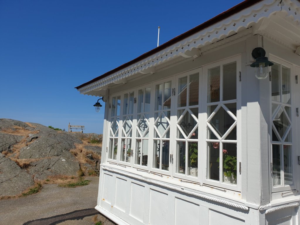 Till sist drog vi till mitt tidigare smultronställe i Skärhamn; utanför Akvarellmuseet ligger en ö med fin utsikt över båtleden om man klättrar upp till högsta punkten.