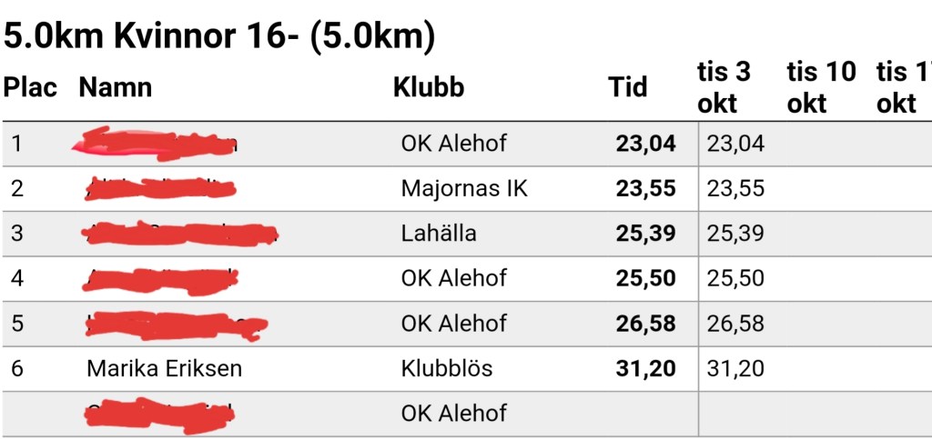 Med fyra löp-pass i benen (alla i september, dessförinnan inte ett enda sedan slutet av maj!) blev det som så, att när OK Alehofs inbjudan till årets Kvantumserie dök upp i mitt FB-flöde… ja, då anmälde jag. Avgiften är bara 200:- för sex lopp, jag gillade verkligen evenemanget förra året – och man är ju inte tvingad att delta alla gånger, eller ens en enda. Jag kan från gång till gång känna efter och in i det sista bestämma mig för eller emot. Me like.