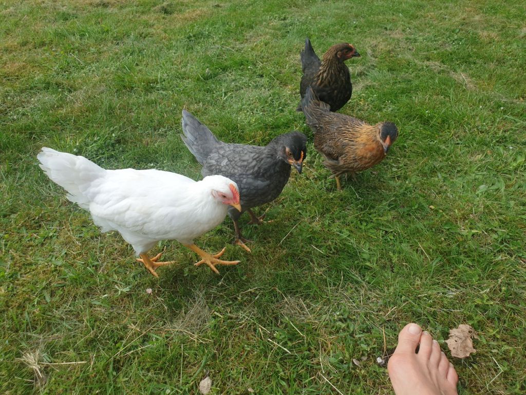 Planen är att hönorna ska få gå fritt i min trädgård. Där finns gräs, lövhögar, buskar, klippor, rabatter, sol, skugga. Stängsel finns också, men det är inte tätt. Det finns ingen voljär som skyddar mot rovfåglar. De kan – och har i skrivande stund också gjort det – gå utanför staketet och får i så fall själva hitta in igen. I gengäld har de ett underbart hönsliv, bara jag klarar att skydda dem mot räv och andra rovdjur.