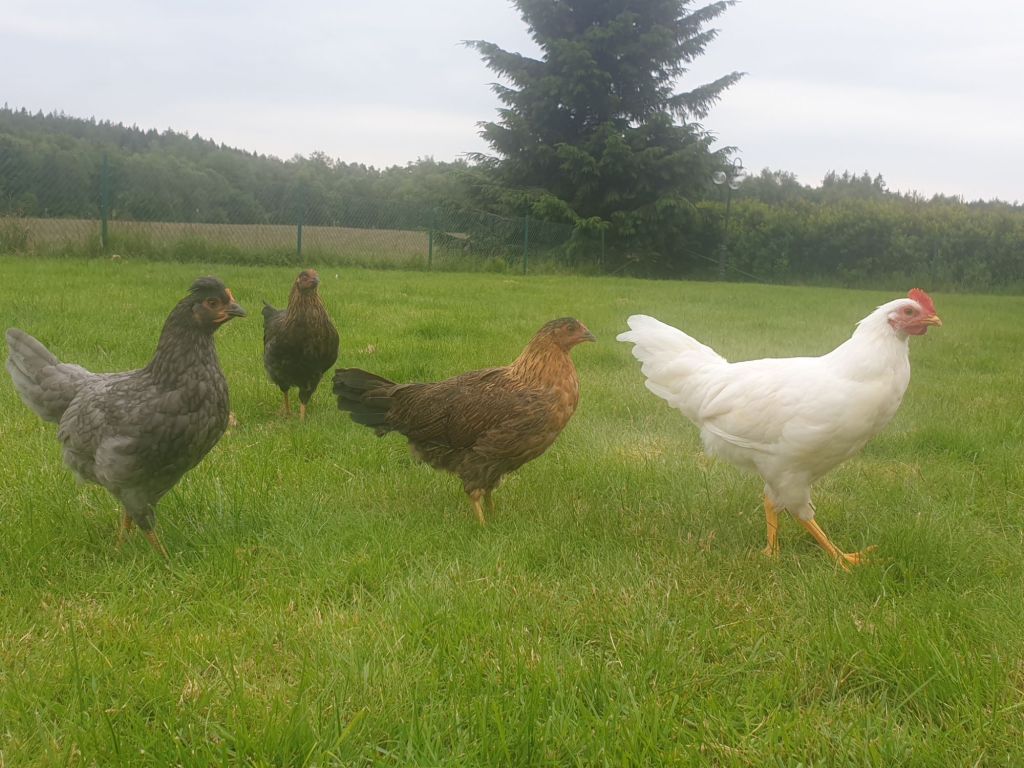 Nej, jag ser helst att de håller sig i inhägnaden – även om de plundrar mina smultronplantor, trampar ner vitlöksodlingen, misshandlar min nya rabarberplanta, bajsar i mina grönsaksodlingar, sprider ut mina lövhögar osv. osv. De är fortfarande söta hönor – och en tupp.