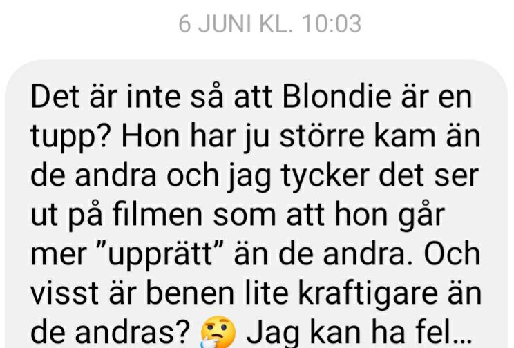 Och någonstans är jag ändå lite nöjd och väntar med spänning på att få höra Blondy gala. Det ska ju även vara bra att ha en tupp i hönsgården, då de håller bättre utkik efter faror än vad hönorna gör.