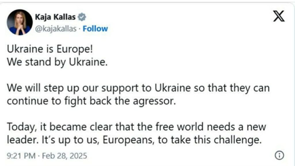 Uppvaknandet (Kaja Kallas är EU:s utikeschef/EU High Representative for Foreign Affairs and Security Policy) Dela detta: Klicka för att dela på X (Öppnas i ett nytt fönster) X Klicka för att dela på Facebook (Öppnas i ett nytt fönster) Facebook Gilla Laddar in …