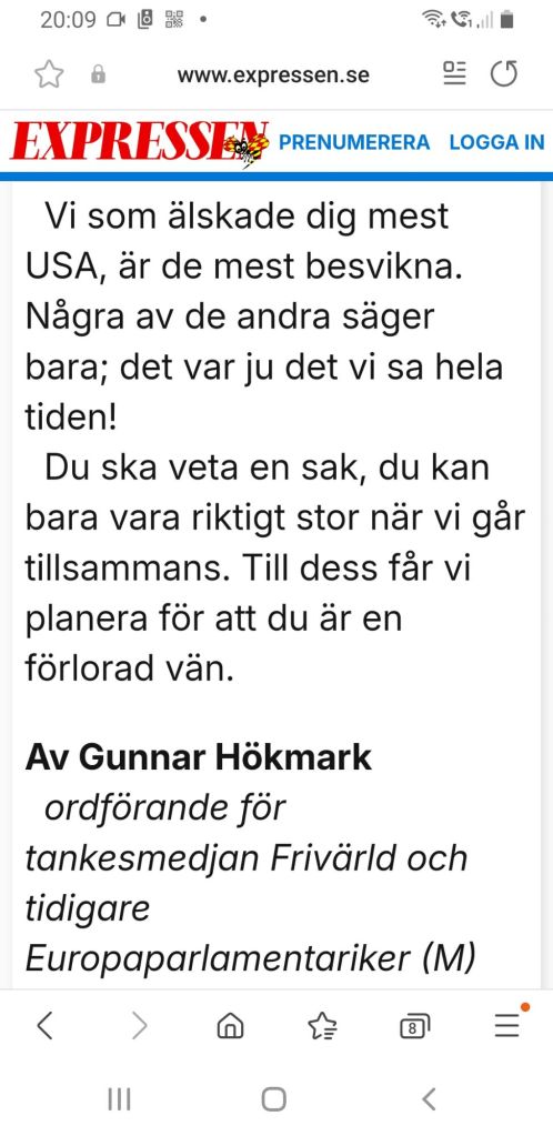 Besvikelsen Gunnar Hökmark beskriver den så bra i Expressen. Dela detta: Klicka för att dela på X (Öppnas i ett nytt fönster) X Klicka för att dela på Facebook (Öppnas i ett nytt fönster) Facebook Gilla Laddar in …