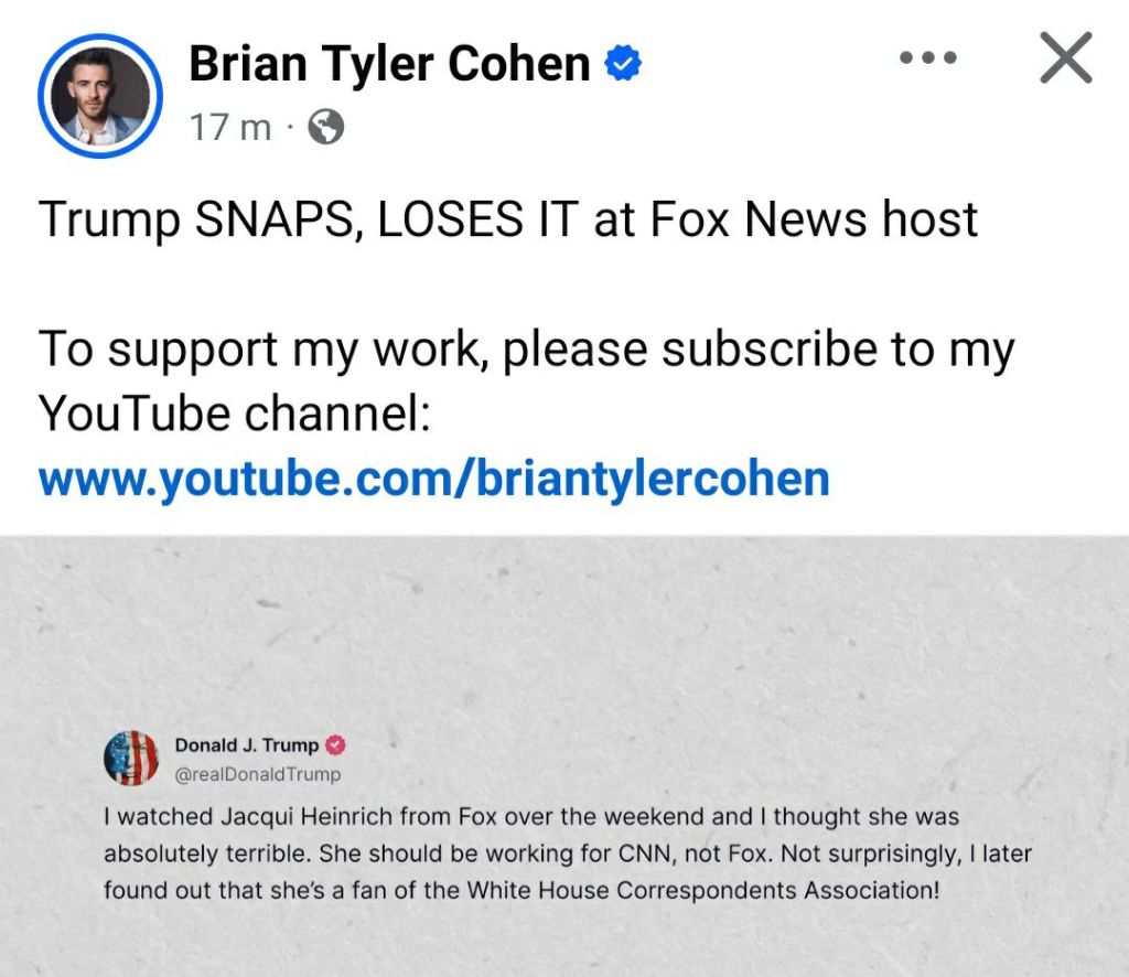 Vad hade då Jacqui Heinrich gjort för något förfärligt? Jo, hon ställde frågan om det var så lämpligt att Trump gjorde reklam för Tesla på det sätt han gjorde framför Vita huset.