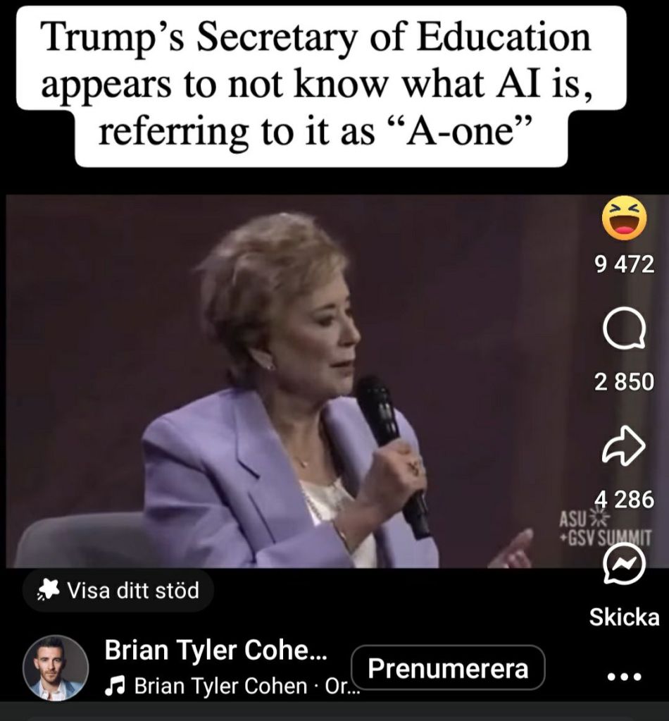 ”Secretary of Education Linda McMahon referred to AI as ”A1” during a panel this week. Linda McMahon may have meant artificial intelligence — but the steak sauce brand A.1. heard opportunity.”