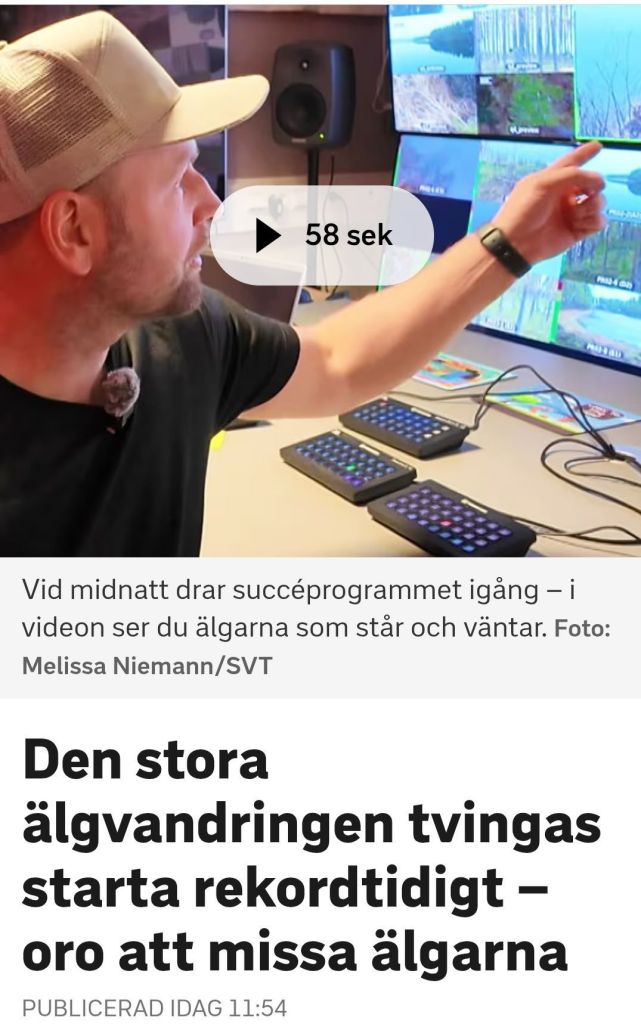”Tanken var att programmet skulle börja sändas 22 april. Men för att hinna med älgarna börjar programmet nu sändas redan vid midnatt natten till tisdagen, en vecka tidigare än planerat.”